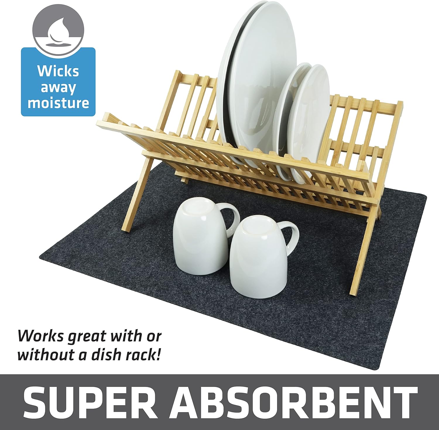 - PROTECTS COUNTERTOPS FROM SCRATCHES, SCUFFS, AND SPILLS: Our mat protects your counters by providing a protection layer when placed under a dish rack, pots, pans, dishware, and glassware. It also protects under small appliances such as a mixer, blender, or coffee maker.