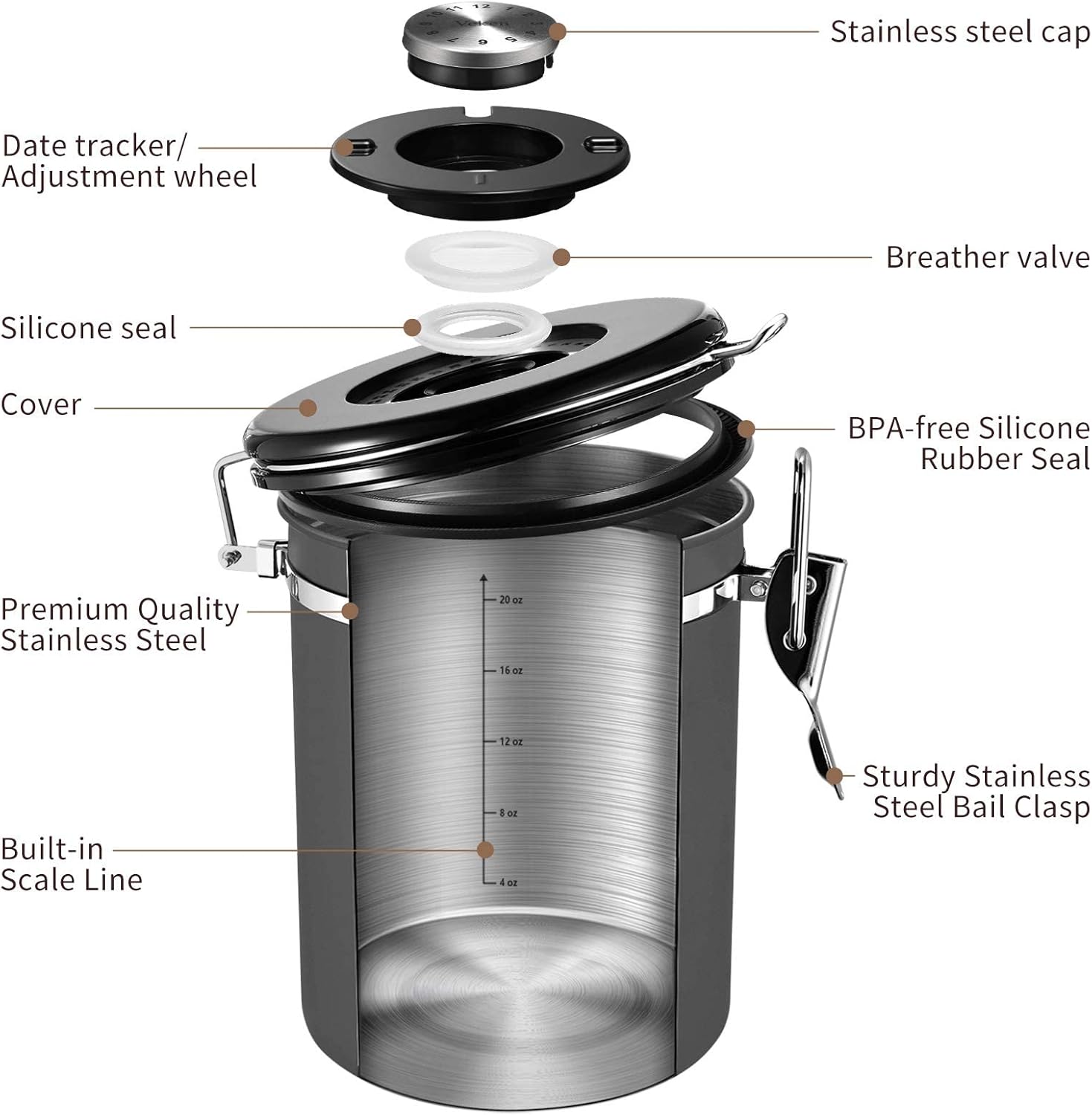 - 304 Stainless Steel - As a coffee lover, you must never compromise on the material and quality of your coffee container. Veken containers are made of thick, high quality stainless steel to create a comfortable environment for coffee beans.