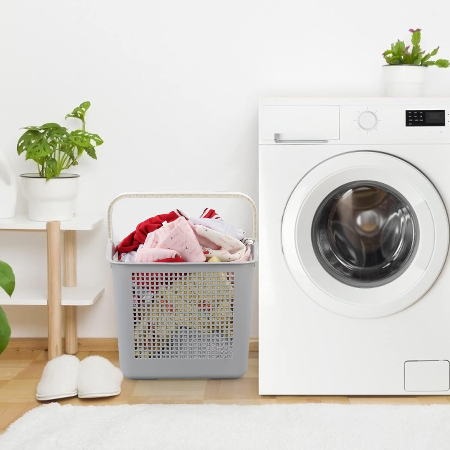 4-Pack 35 L Plastic Laundry Hamper, Large Storage Basket with Handle, Gray
