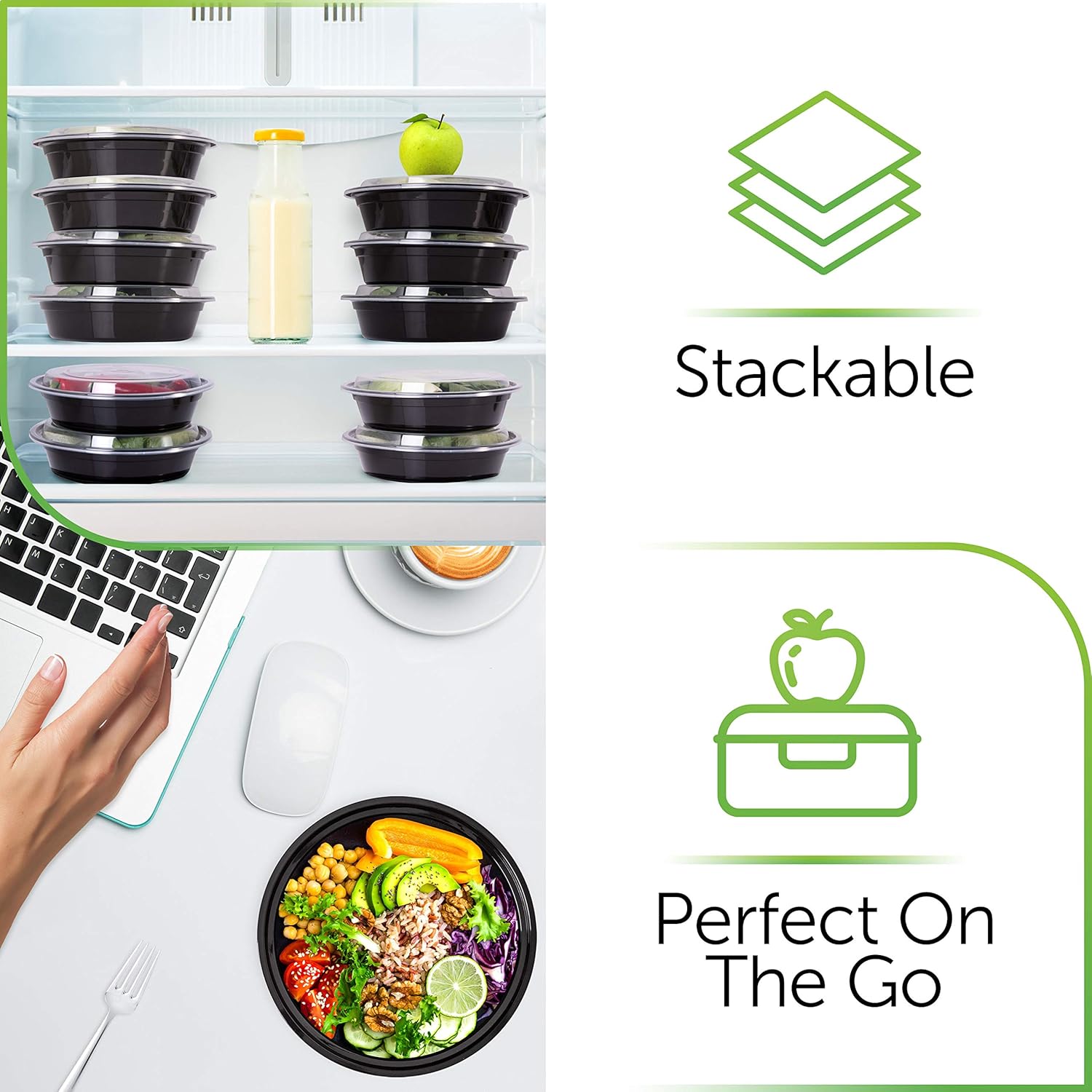 PrepNaturals Reusable Plastic Containers with Lids, 60 Pack, Black, Meal Prep Bowls, Lunch Containers, BPA, PVC and Phthalate Free, Microwave and Freezer Safe