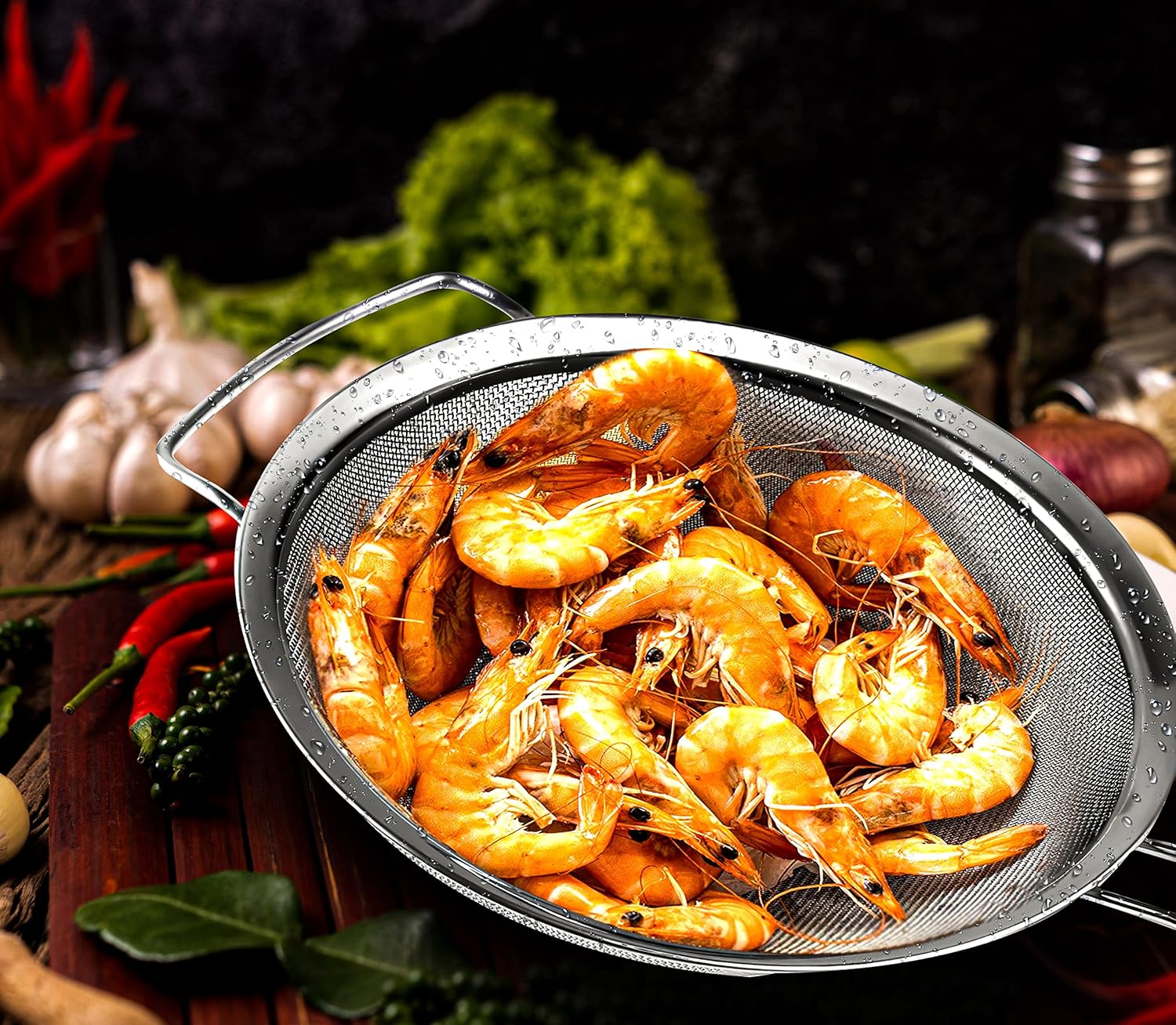 - 9 inch Premium Metal strainer - Our high grade stainless steel food strainer is a must have kitchen essentials. It won`t bend or rust.
