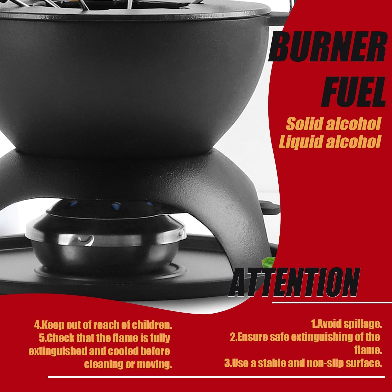 - VERSATILE CAST IRON FONDUE EXPERIENCE: Enjoy a delightful array of cheese and chocolate fondue recipes with our compact 1.26-quart cast iron fondue pot (Dimensions: 8.66" L x 7.28" W x 3.54" H). Perfect for up to 6 people, it's ideal for birthdays, daily use, family gatherings, camping trips, picnics, or any special occasion to share memorable moments with friends and family