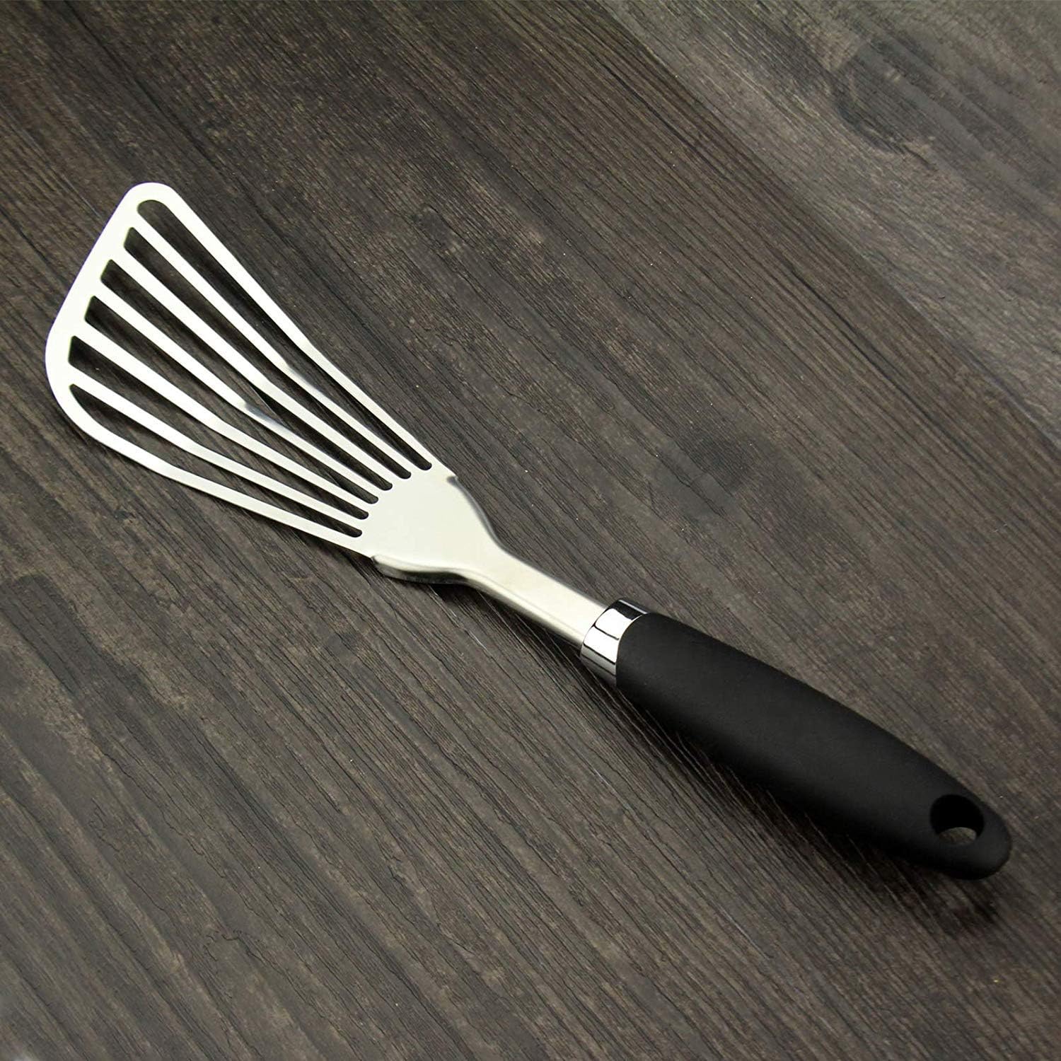 304 Stainless Steel Fish Spatula, Non-Slip Ergonomic Handle Slotted Spatula, Black