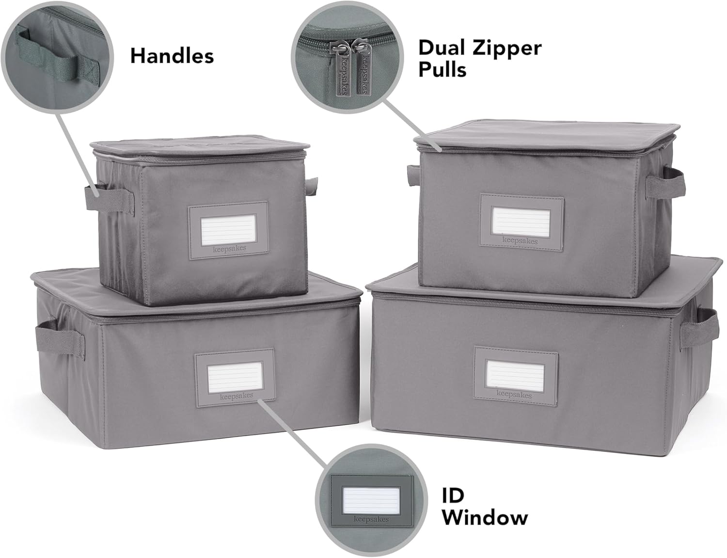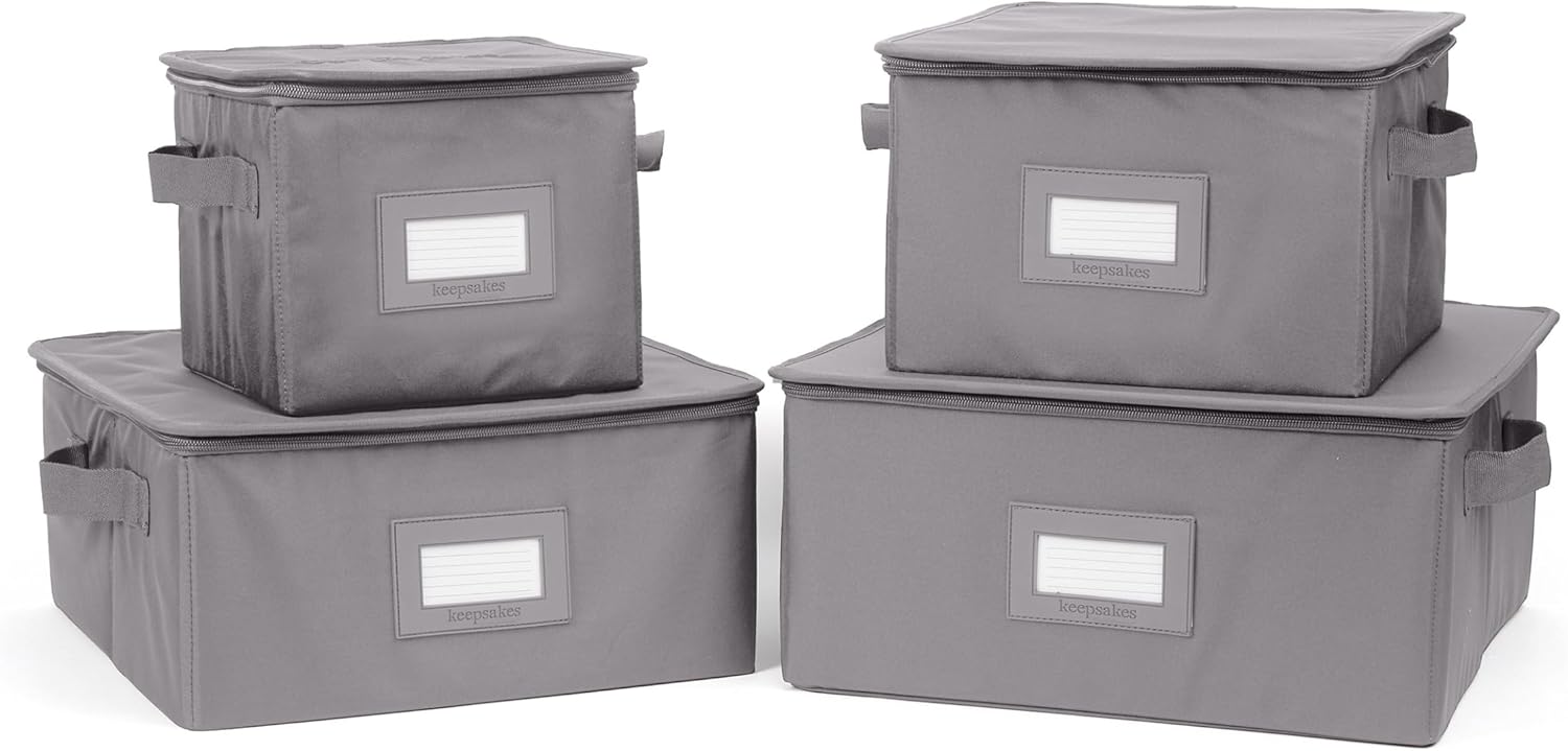 Covermates Keepsakes Dish Storage Box - Stackable, Reinforced Handles, China Storage, Graphite