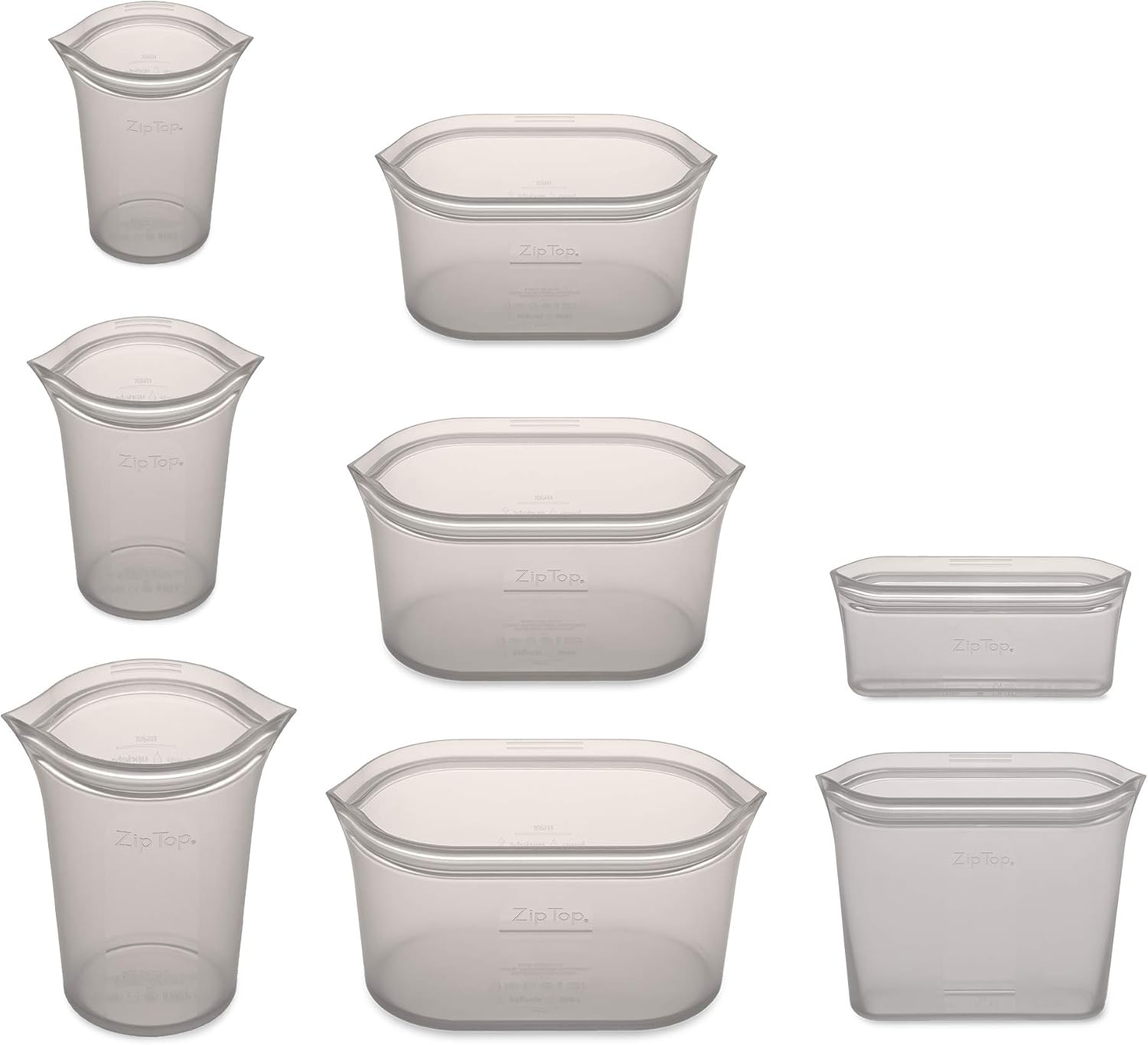 Zip Top Reusable Food Storage Bags | Full Set of 8 [Gray] | Silicone Meal Prep Container | Microwave, Dishwasher and Freezer Safe | Made in the USA