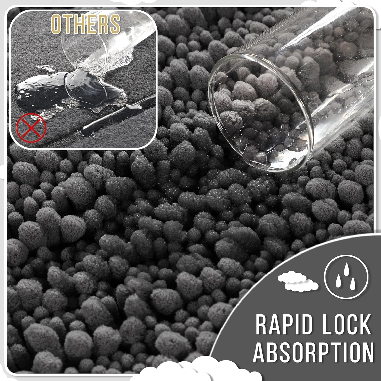 Yimobra Long Bathroom Rugs Non Slip Washable 44x24 Inch - Ultra Soft Absorbent Chenille Bath Mat, Quick Dry Shaggy Floor Carpet for Tub Shower, Dark Gray Home Decor Accessories