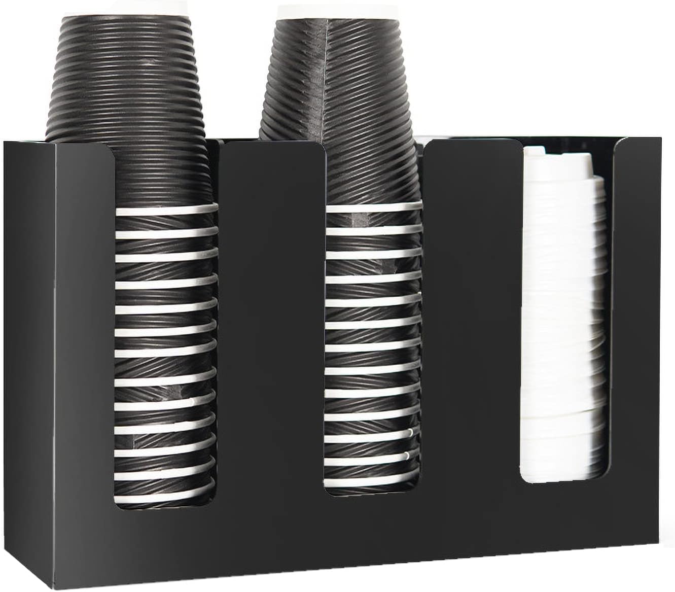 Tirifer Disposable Paper Cup Dispenser, Acrylic Coffee Cup and Lid Storage Organizer Holder, Coffee Milk Tea Shop Restaurant Accessories Christmas Party Supplies, 3 Compartments