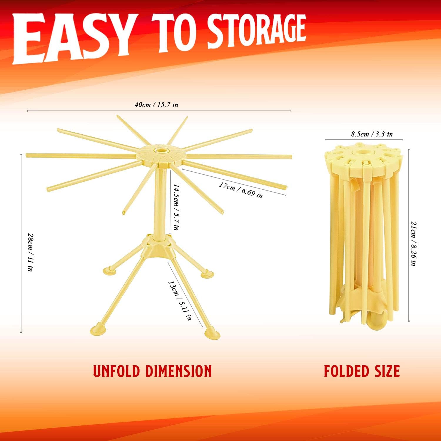 - COMPACT DESIGN: The spaghetti dryer stand is ultra-compact and is collapsible so you can easily store it when you’re not drying pasta. The pasta dry holder is incredibly easy to assemble and disassemble, and its compact size makes it ideal for your kitchen countertop or your kitchen table.