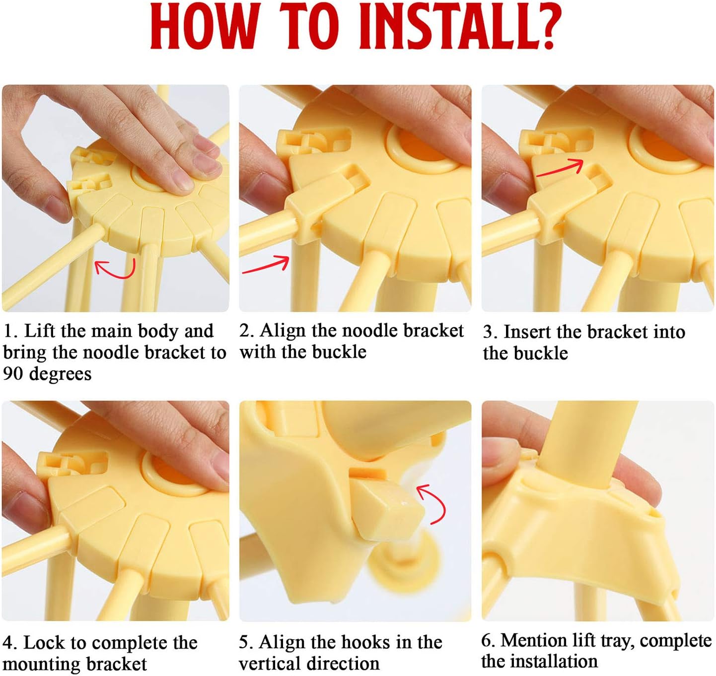 GOZIHA Pasta Drying Rack Noodle Stand with 10 Bar Handles Collapsible | Household Noodle Dryer Rack Hanging for Home Use | Spaghetti Drying Rack Noodle Stand | Easy Storage and Quick Set-Up (Yellow)