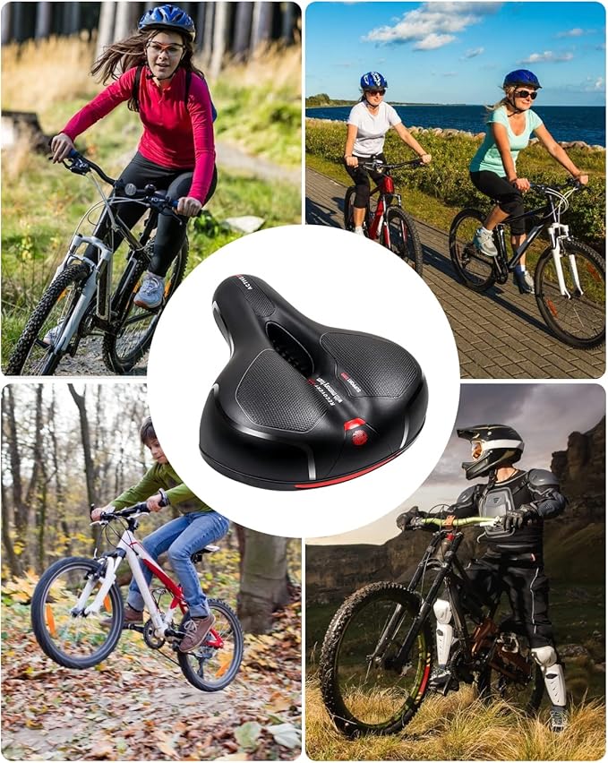 - 【Waterproof Bright Red Warning Strip Design 】Our large bike seat comes with a red reflective sticker, can Improve eye-catching & safety when riding at night or rain! To make your trip much safer, whether you ride your bike to work, school, in the park, around the block or even off-road, day or night, you will find this seat the perfect choice.