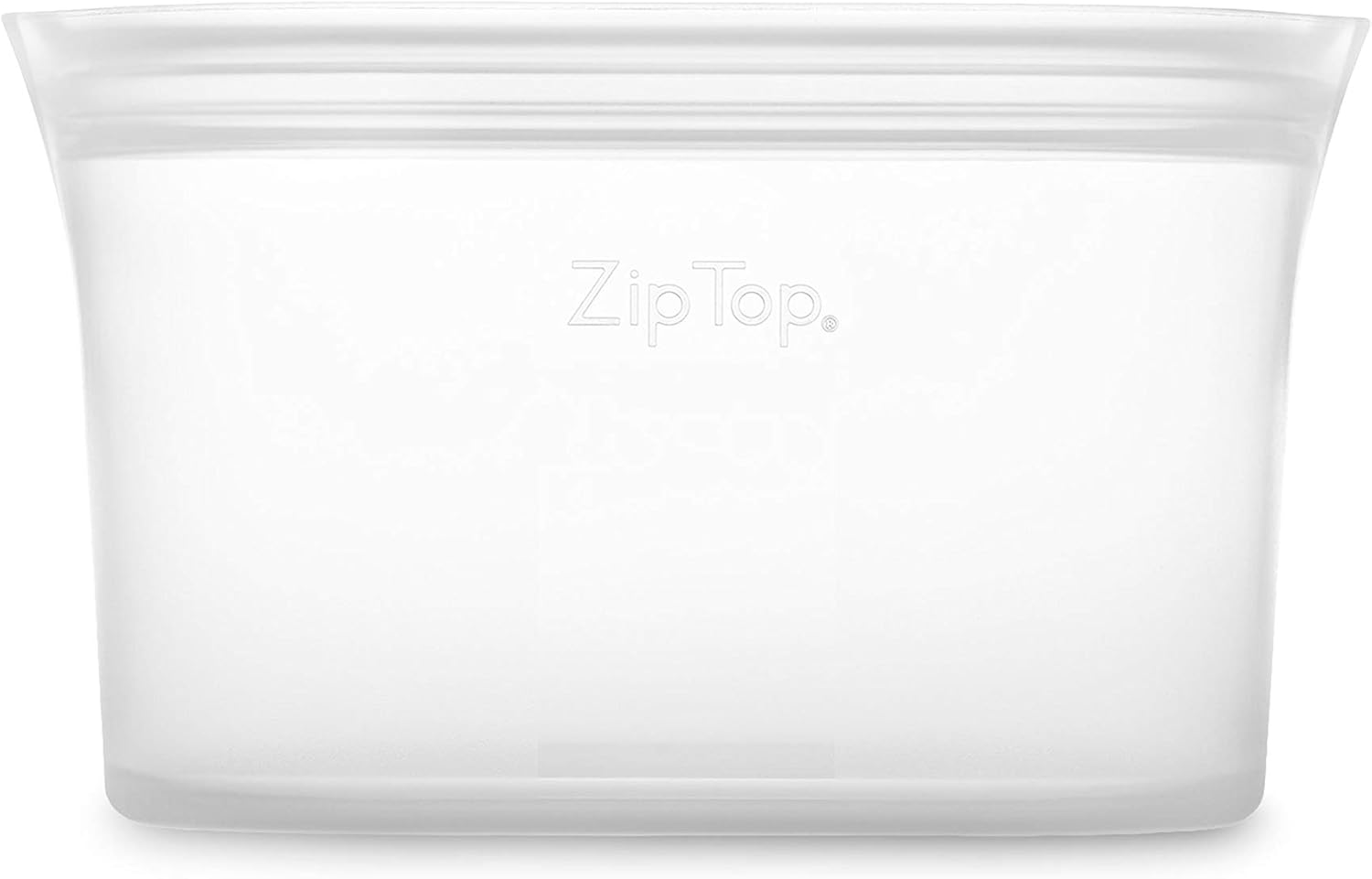 Zip Top Reusable Food Storage Bags | Small Dish [Frost] | Silicone Meal Prep Container | Microwave, Dishwasher and Freezer Safe | Made in the USA