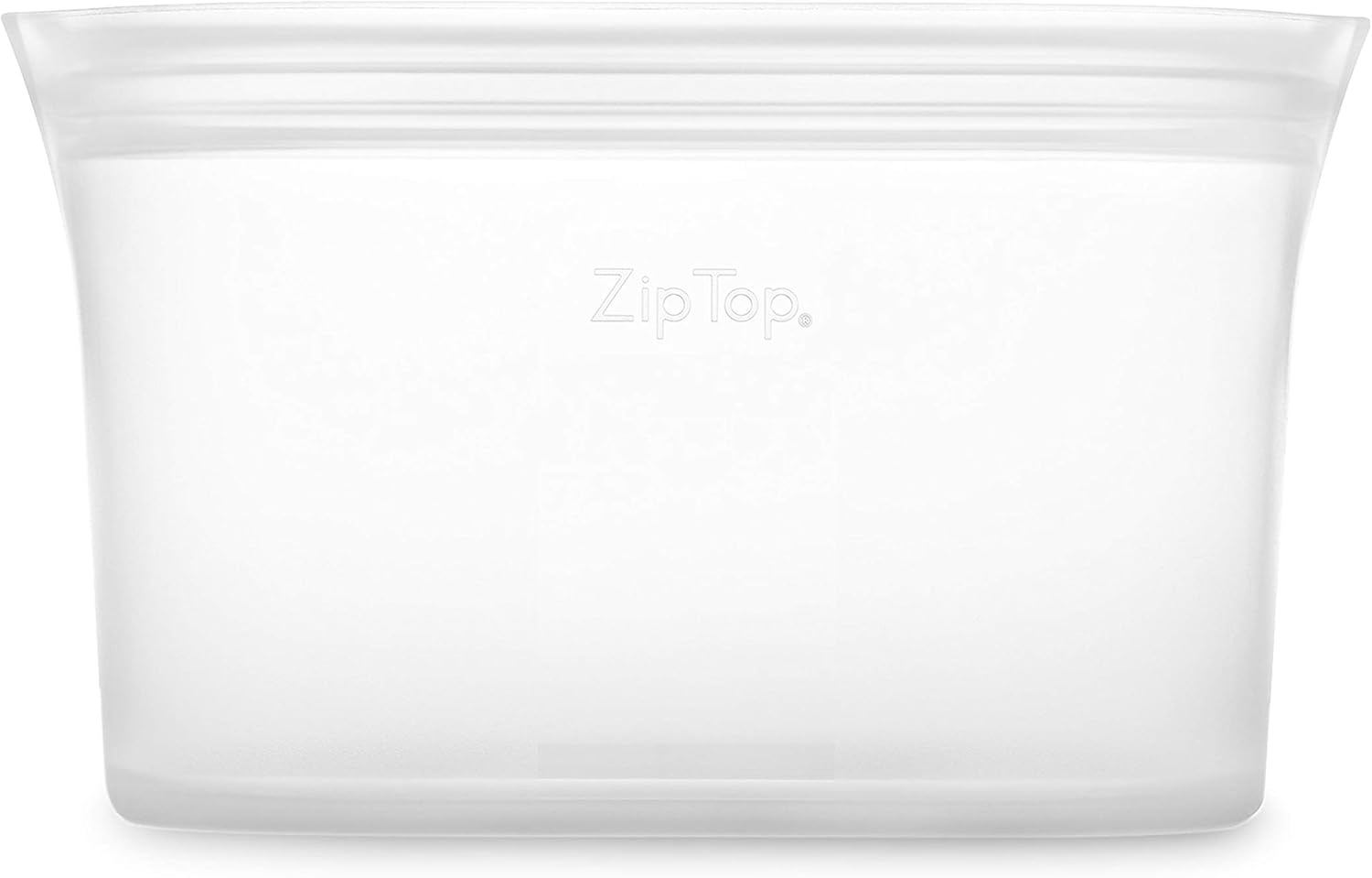 Zip Top Reusable Food Storage Bags | Large Dish [Frost] | Silicone Meal Prep Container | Microwave, Dishwasher and Freezer Safe | Made in the USA