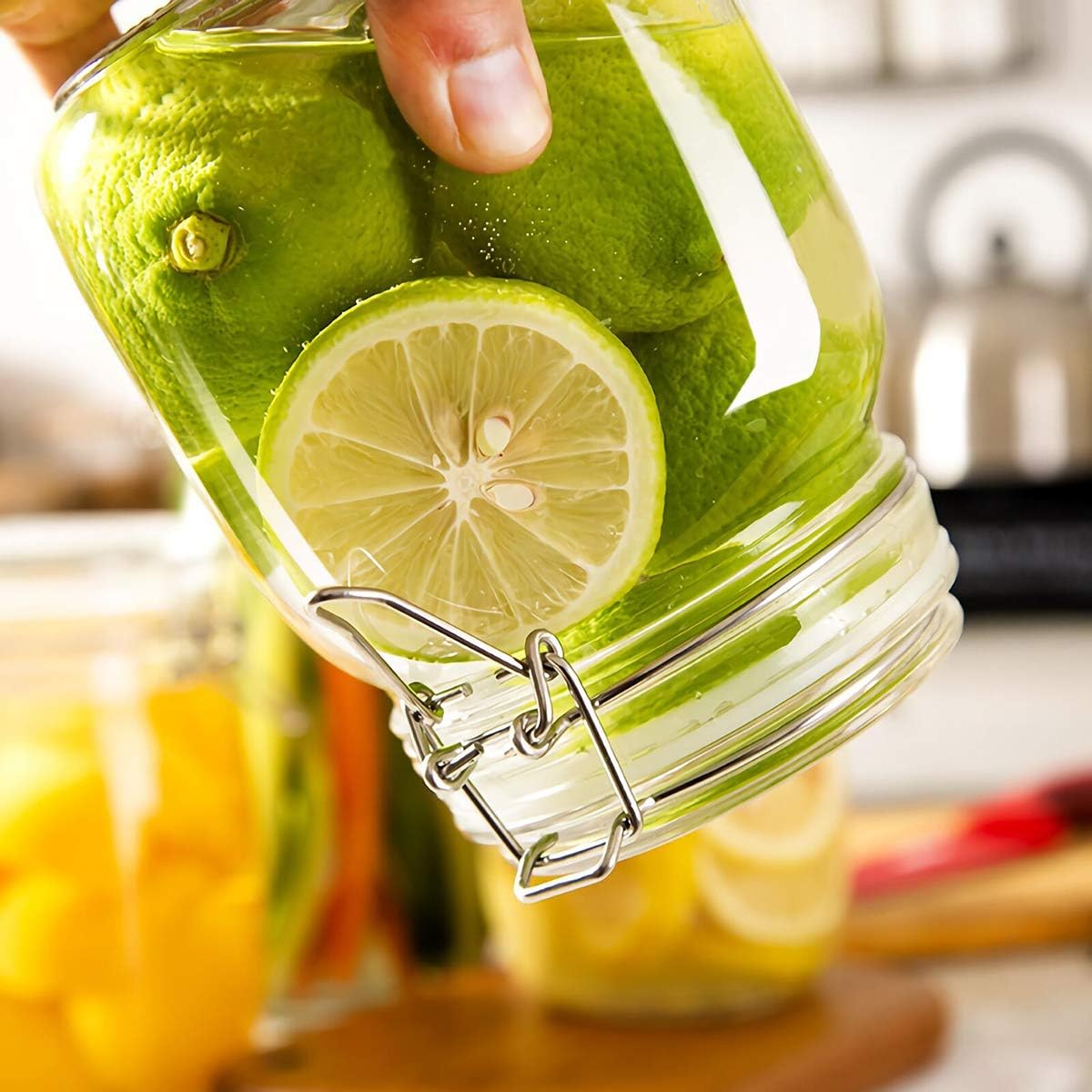 Kingrol 4 Pack 34 Ounces Glass Jars, Wide Mouth Storage Canister Jars with Bail and Trigger Clamp Lids for Pickling, Preserving, Canning, Dry Food Storage