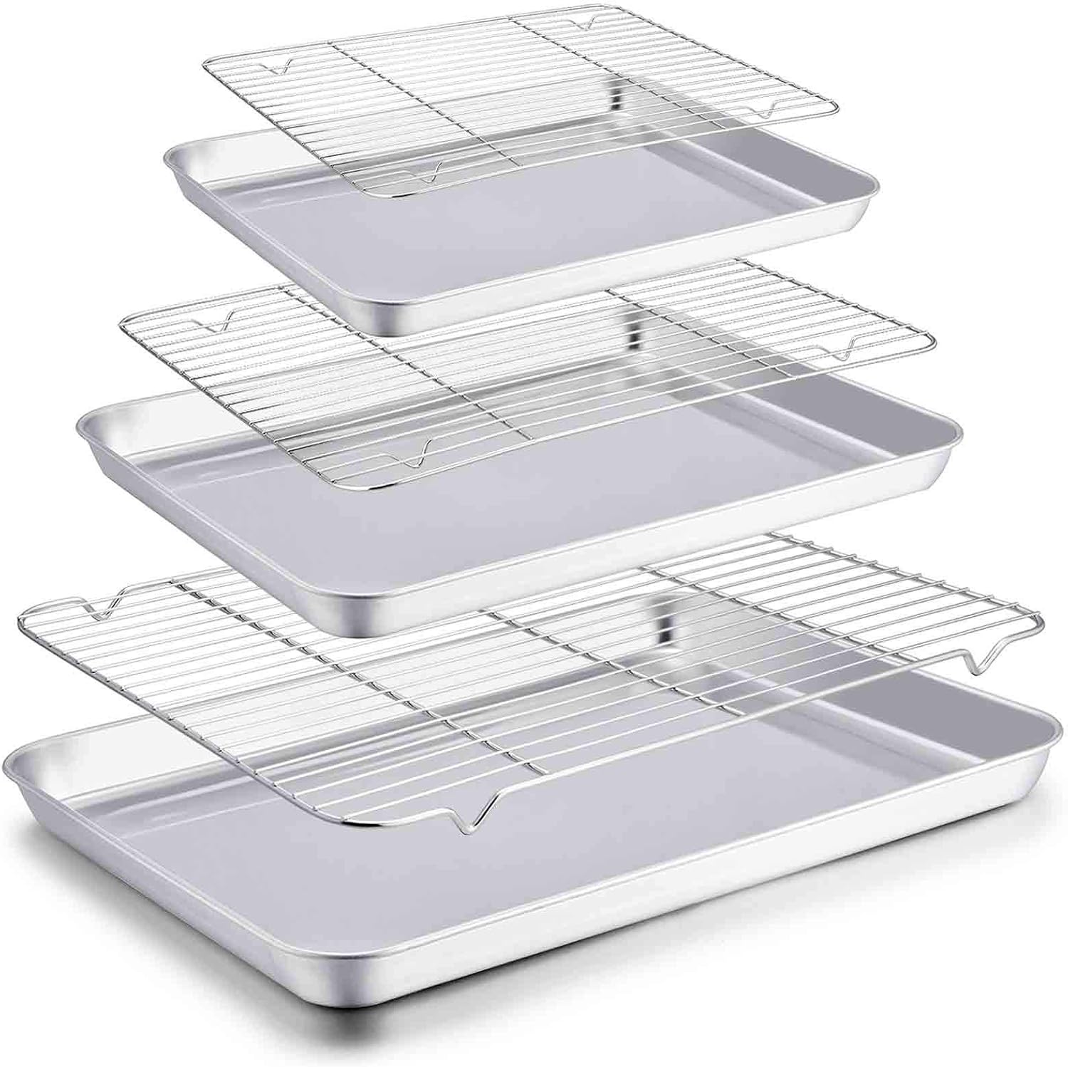 TeamFar Baking Sheet with Rack Set, 20’’ & 16’’ & 12½’’, Stainless Steel Cookie Sheet Baking Pans with Cooling Roasting Racks, Non Toxic & Rust Free, Mirror Finish & Dishwasher Safe - 6 Pieces