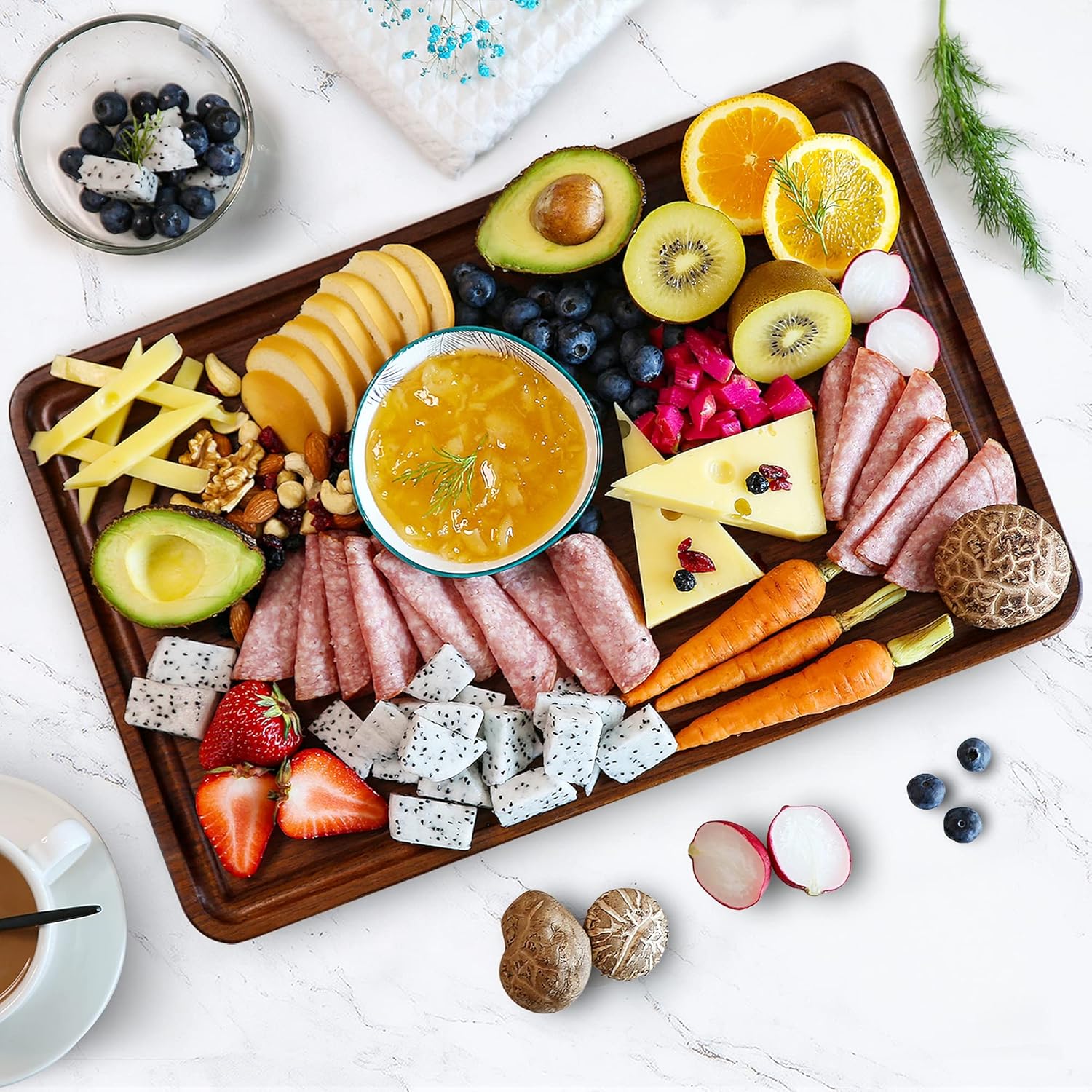 - Beautiful High-End Walnut Wood – American walnut wood with unique colors and textures, can add extra elengence and beauty to your kitchen and life. It has always been the first choice for making high-end cutting boards. Very durable and sturdy, do not smell and very easy to use and clean.( Please do not wash with a dish-washer to have a longer life) Pre-oiled, you can use directly out of box