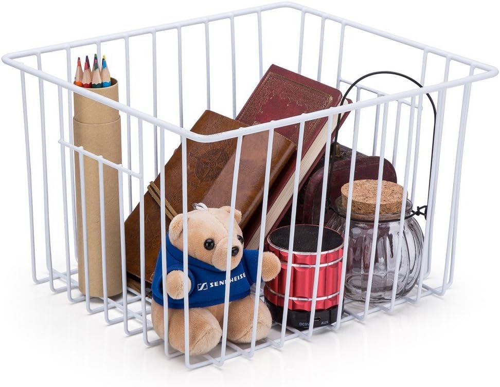 - Convenience. Wire storage basket with built-in handles for portability. Open design lets you easily view everything in the basket and easy access.