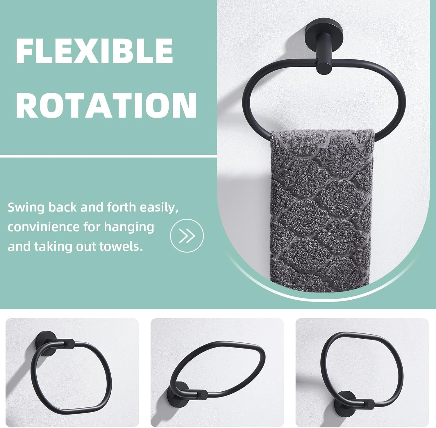Suyar Matte Black Towel Ring, Stainless Steel Modern Swivel Hand Towel Holder for Bathroom Wall, Oval Shape