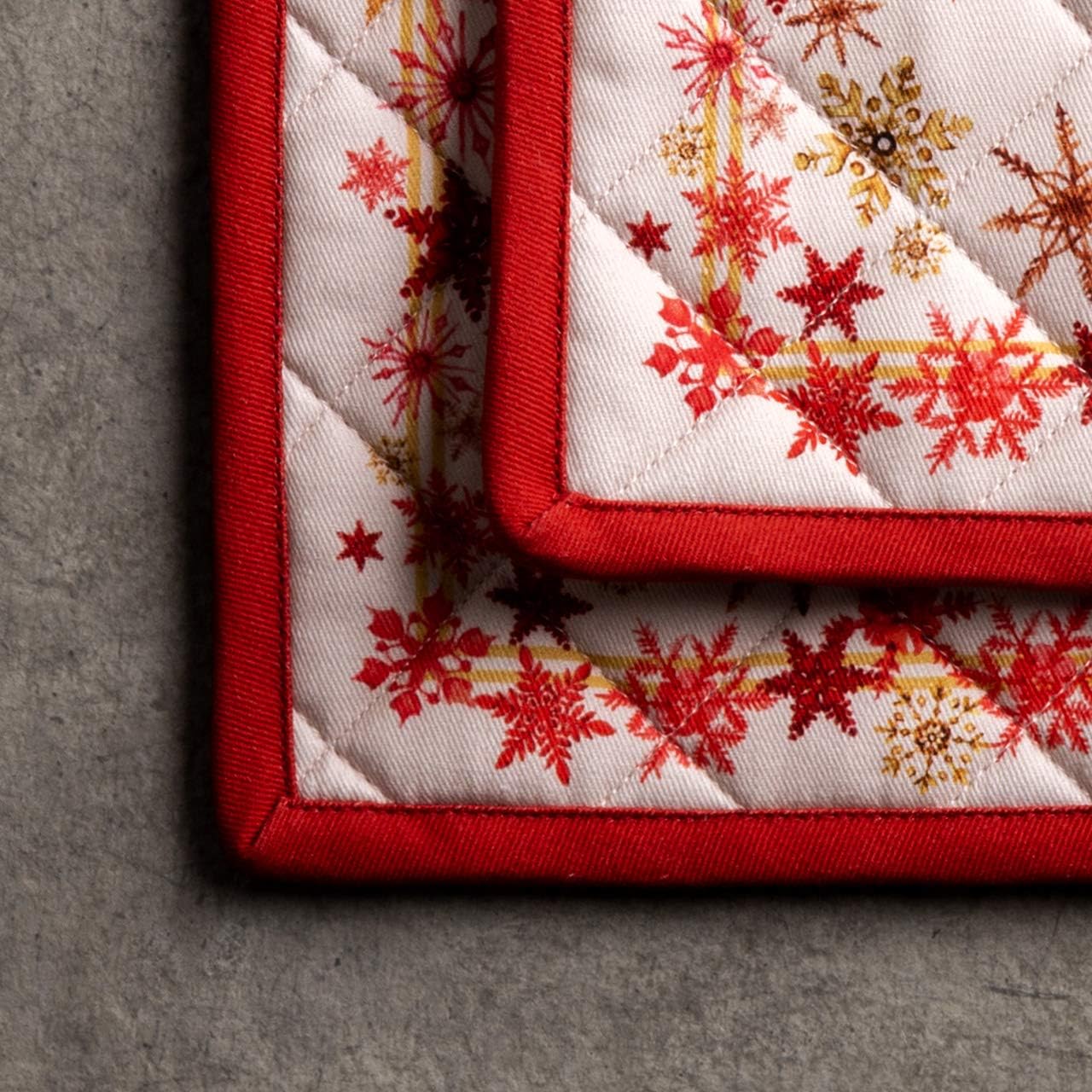 Maison d' Hermine Pot Holders Set 100% Cotton Heat Resistant Potholders 8" x 8" Hot Pads with Loop BBQ, Cooking, Baking, Grilling, Kitchen, Handling Hot Pans (Pack of 2, Crystal Star)
