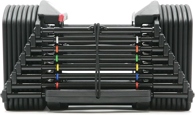 - ADJUSTABLE DUMBBELLS SET: Elevate your fitness and performance with strength-training equipment that adjusts with you. These PowerBlock dumbbells have a range of 5-50 pounds per hand, a rubber grip handle, and easy weight identification.