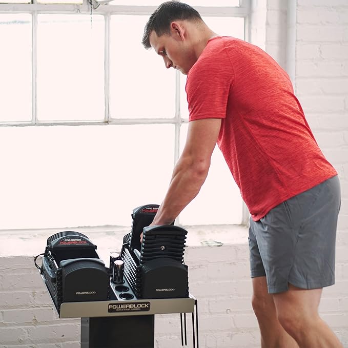 PowerBlock Pro 50 Adjustable Dumbbells, Sold in Pairs, 5-50 lb. Dumbbells, Durable Steel Build, Innovative Workout Equipment, All-in-One Dumbbells