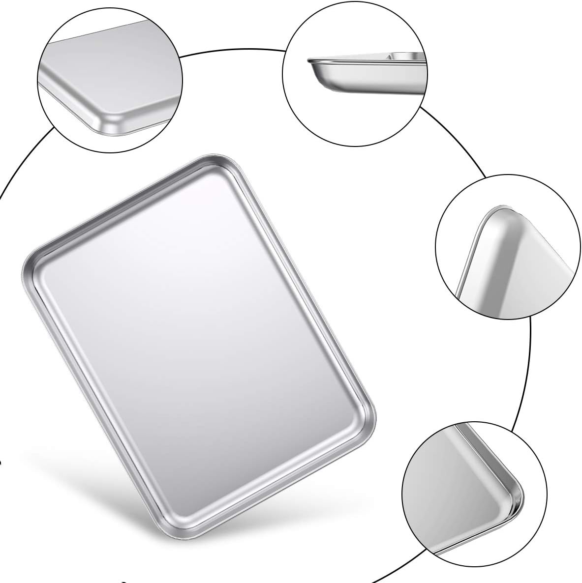 - CRAFTED: Our stainless steel baking sheet has superior mirror finish to reduce the risk of food sticking; Smooth roll edges make it comfortable to hold and transfer