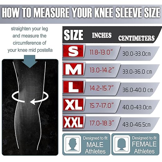 • SUPERIOR QUALITY KNEE BRACE: Made out of a perfect blend of Neoprene (70%) and Polyamide (30%), our knee sleeves are lightweight and sturdy, withstanding frequent washing and daily use.Available in 5 Sizes (S-M-L-XL-XXL), we are confident you will find the pair that suits you best – Check Out Our Product Description For More Info.