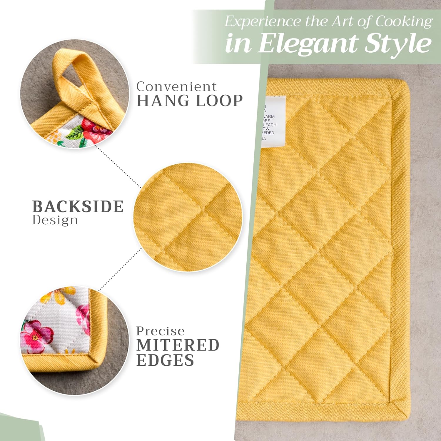 - 100% Quilted cotton: Made from premium quilted cotton, our pot holder ensures safe handling of hot pans or dishes. The soft, durable build provides excellent heat resistance and grip—perfect for everyday cooking and baking needs