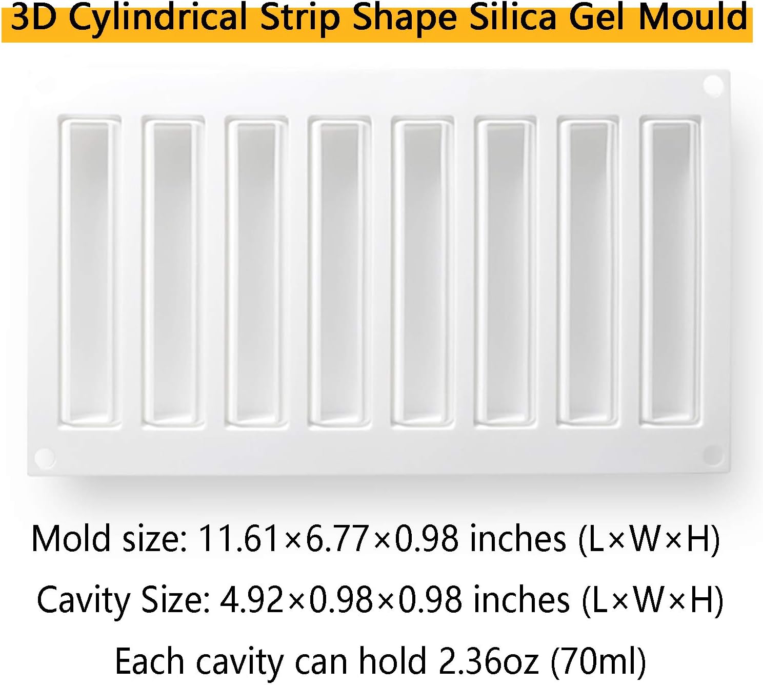 - ENJOY COOKING - The 3D pear shape silicone baking mold overall size is 11.61x6.77x0.98 inches (LxWxH). Cavity Size: 4.92x0.98x0.98 inches (LxWxH). Each cavity can hold 2.36oz (70ml). Using multi-cavity silicone cake candy chocolate molds make your cooking easier