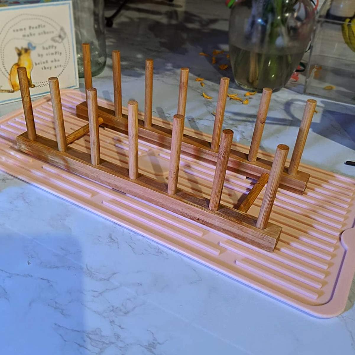 Dish Drying Mat,Large Silicone Drying Mat,Silicone Kitchen Countertop Drying Mat for Pots, Pans, Glassware, Silverware (Pink)