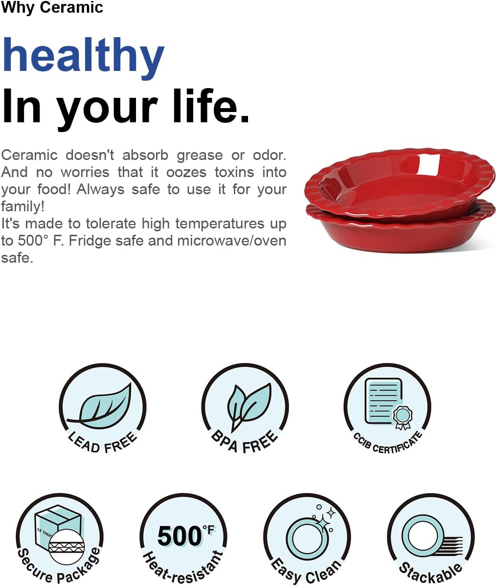 - Ceramics Is A Healthier Choice Than Metal Bakeware: The ceramic pie dish elevates pie baking from ordinary to art as it evenly distributes the heat during baking; Durable for everyday use. The highly resistant glaze does not absorb food odors or flavors