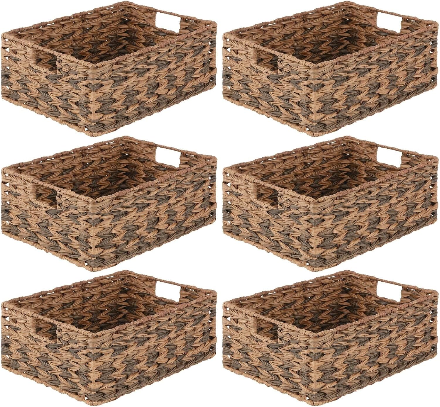 - mDesign Woven Farmhouse Kitchen Pantry Food Storage Organizer Basket Bin Box - Container Organization for Cabinets, Cupboards, Shelves, Countertops - Store Potatoes, Onions, Fruit, 6 Pack, Brown Ombre
