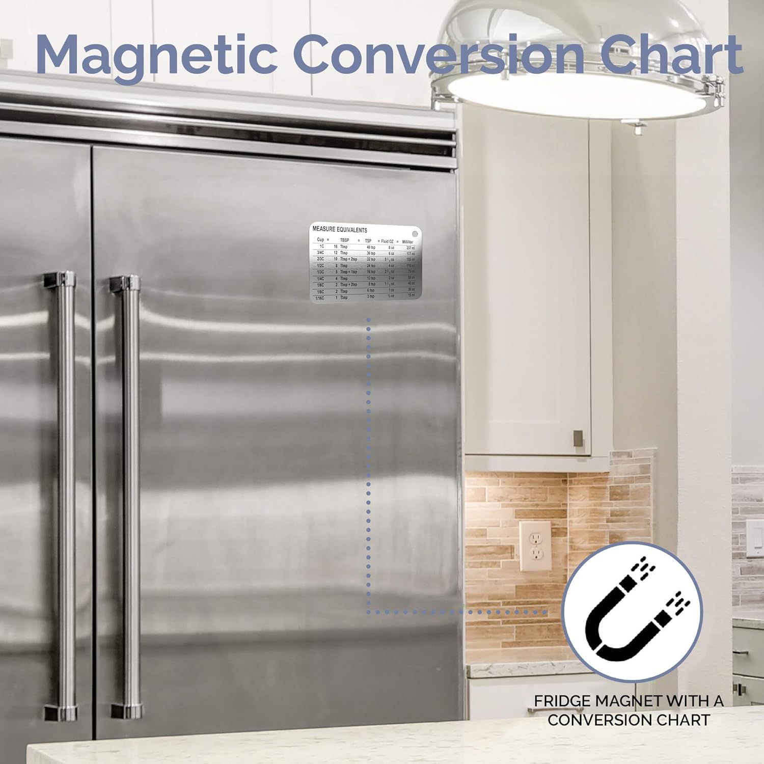 22-Piece Stainless Steel Measuring Cups and Spoons Set, Tad Dash Pinch Smidgen Drop Mini Measuring Spoons, Measuring Stick Leveler, Measurement Conversion Chart Fridge Magnet, (Farmhouse)