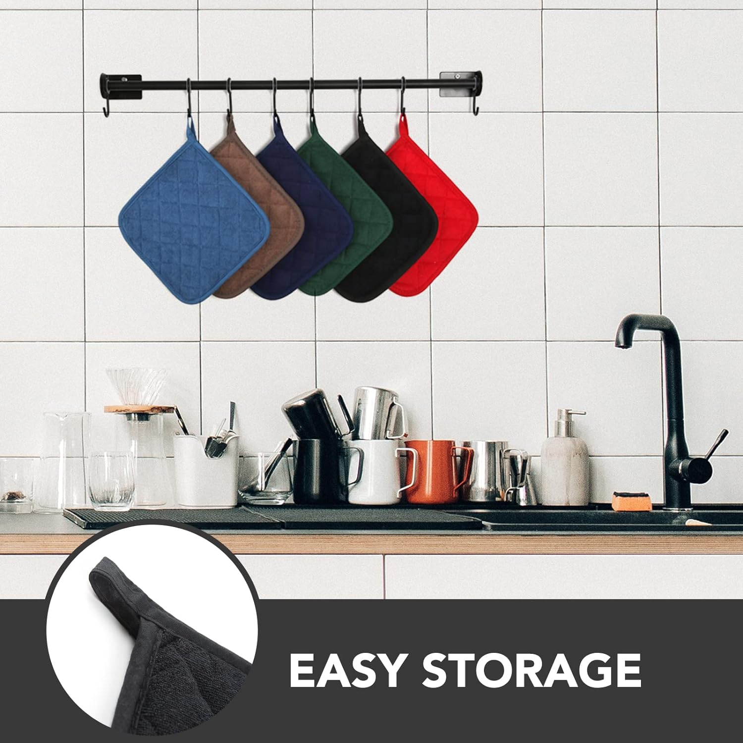 Joyhalo 6 Pack Pot Holders for Kitchen,Cotton Oven Holder with Great Heat Resistance,Non Slip Hot Pads for Kitchen Clearance,Black