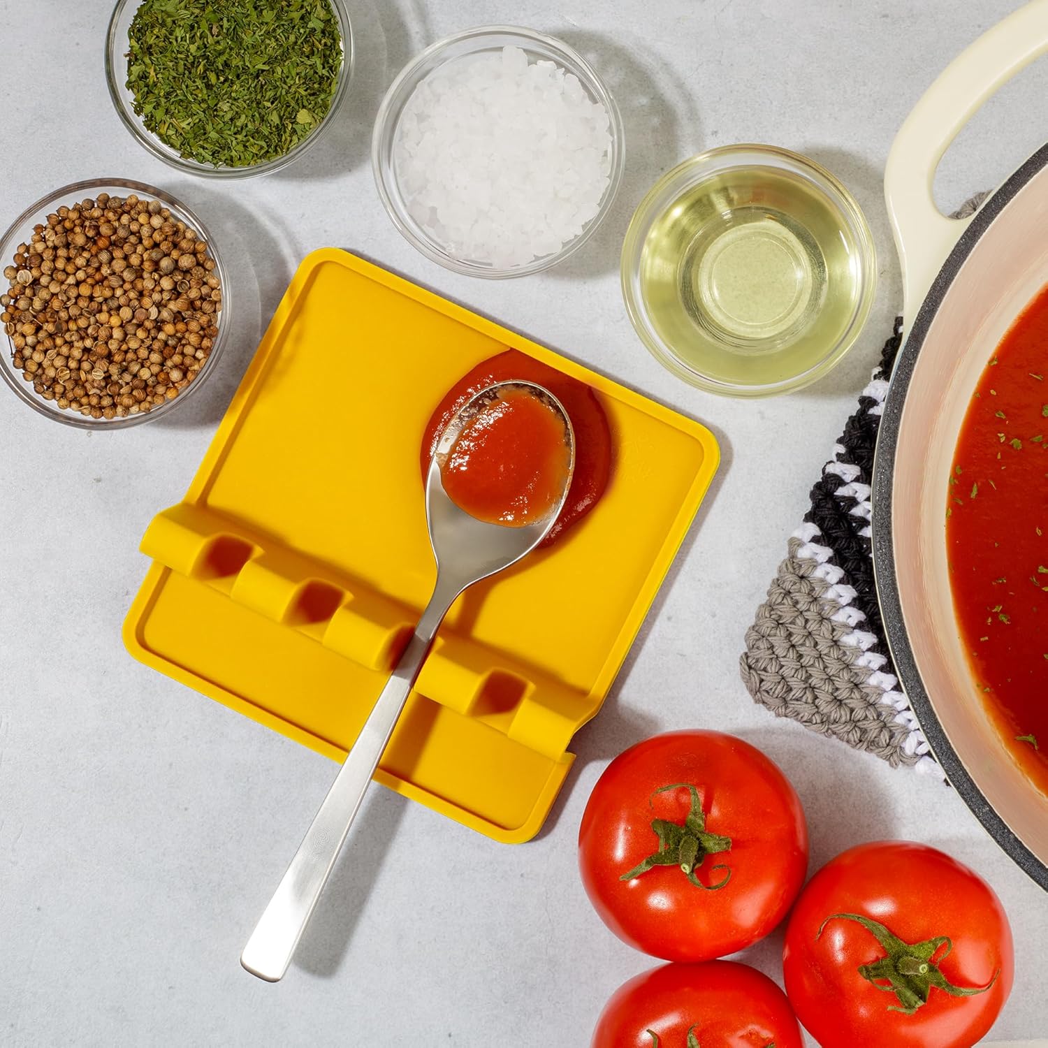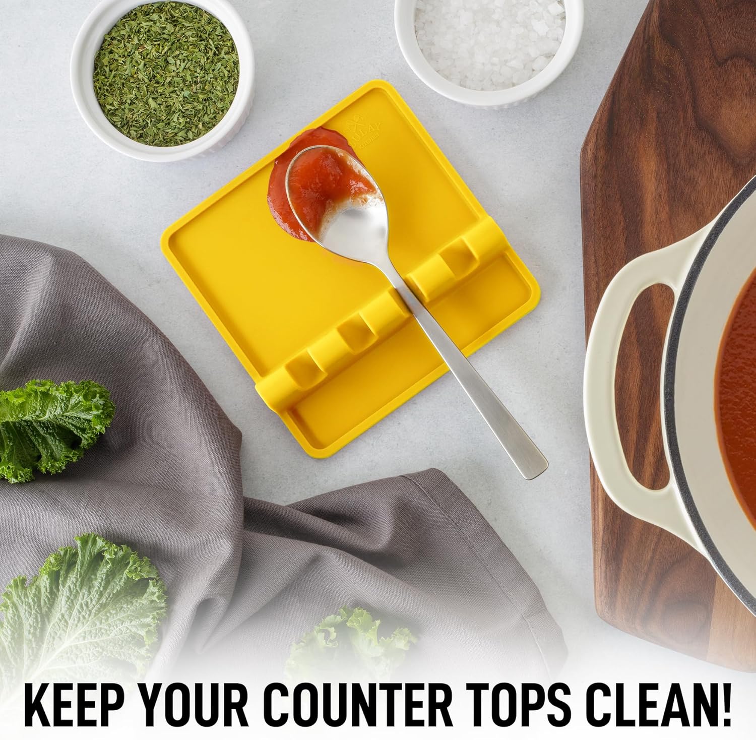 - KEEP YOUR COUNTERTOPS CLEAN: Are you tired of random oil and sauce drips all over stovetops and kitchen counters while cooking? Say no more! Our spoon rest has raised edges to catch all the drips, making it a great addition to your kitchen gadgets for keeping counters and stoves splatter-free. Revolutionize your cooking, baking, or grilling experience with this beautifully designed square spoon holder.
