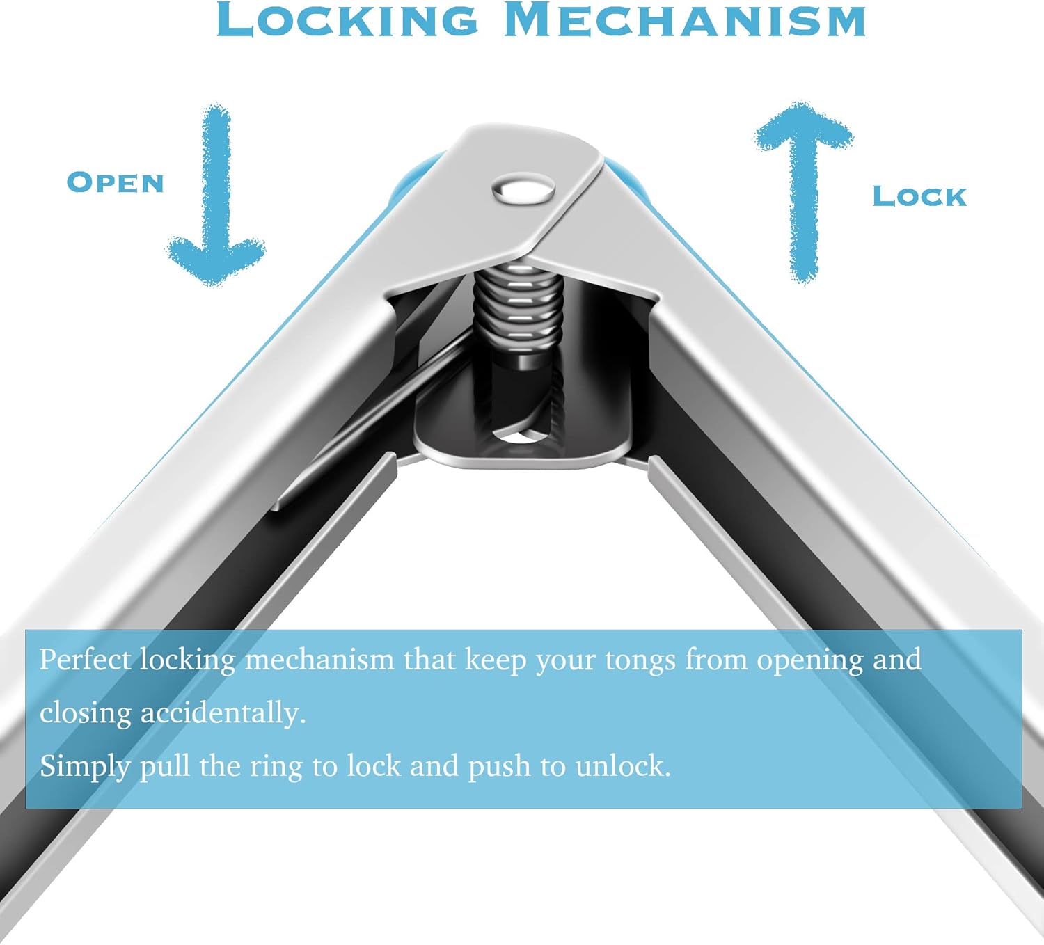 Set of 2 Kitchen Tongs, Premium Stainless Steel Locking 9-Inch & 12-Inch Silicone Grilling Barbeque Cooking Food Tong, Blue