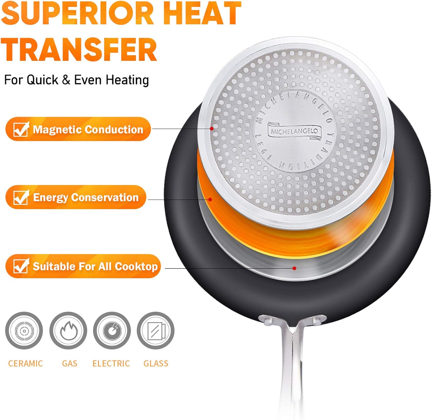 - SCRATCH RESISTANT MULTIPLE LAYER NON STICK COATING - Michelangelo Nonstick 2 Quart Sauce pan is perfect for cooking/re-heating vegetables, sauces, pasta or soup. The superior Ceramic & Titanium interior makes it ideal for use low to medium heat with minimum oil and lots of flavor. Cleans up easily.