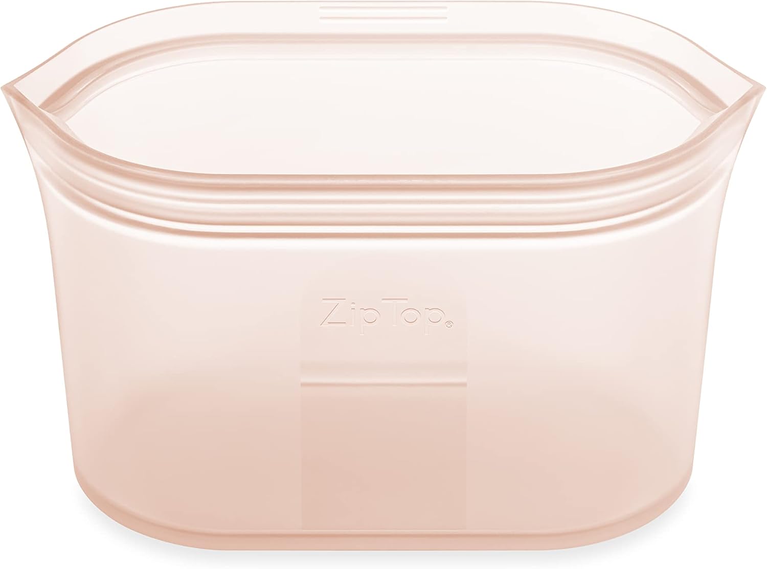 Zip Top Reusable Food Storage Bags | Medium Dish [Peach] | Silicone Meal Prep Container | Microwave, Dishwasher and Freezer Safe | Made in the USA