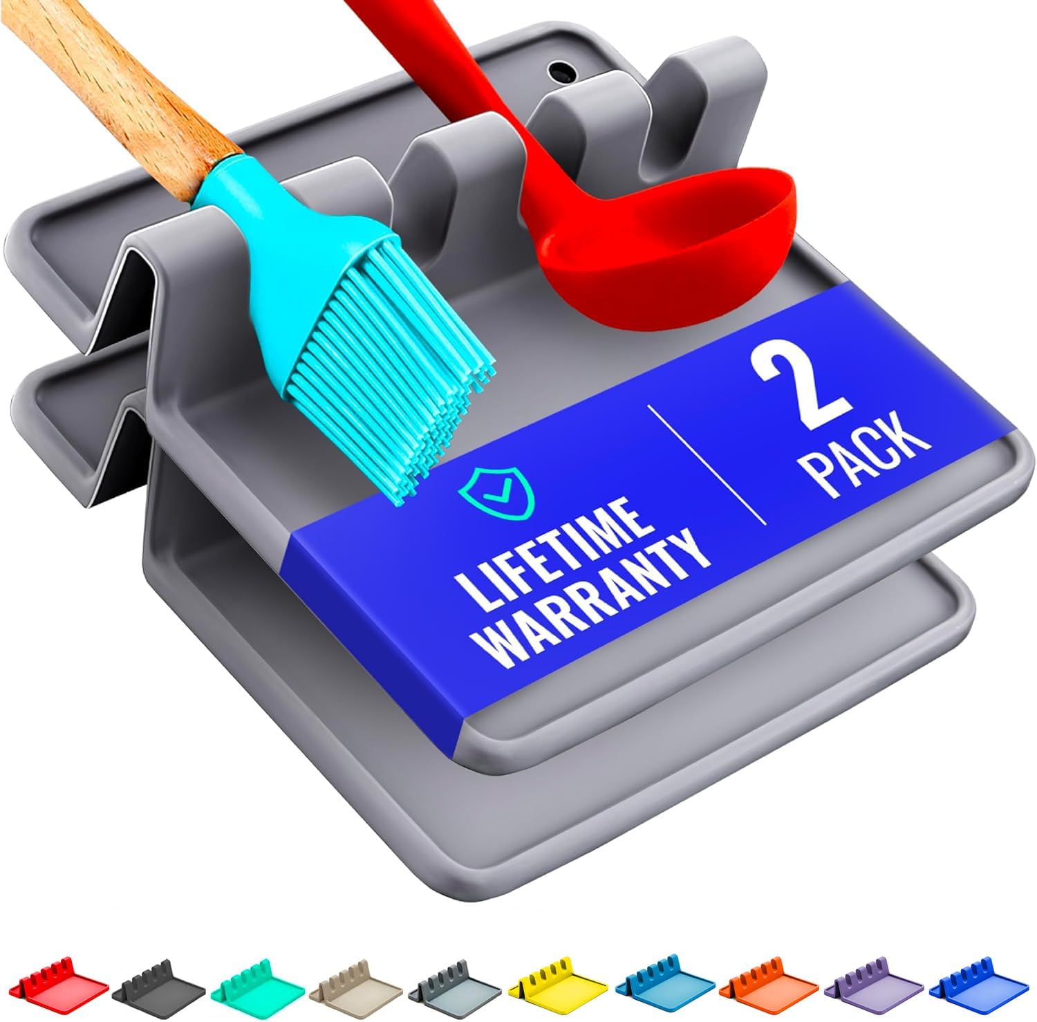 - ENJOY A NICE & CLEAN COUNTERTOP: Start cooking like a pro with our universal silicone utensil rest! Maximize your counter space and minimize mess by keeping all your cooking or grilling utensils and kitchen gadgets neatly organized in your kitchen workspace. You will absolutely love cooking with a Cooler Kitchen silicone spoon holder! ROTATE TWO UTENSIL RESTS! The best part about having two is being able to swap one out for another when it gets dirty!
