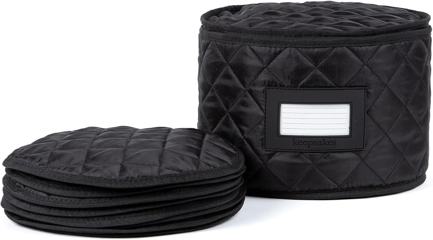 Covermates Keepsakes - Dish Storage - Padded Protection - ID Window - Stain Resistant - Machine Washable - China Storage, Black