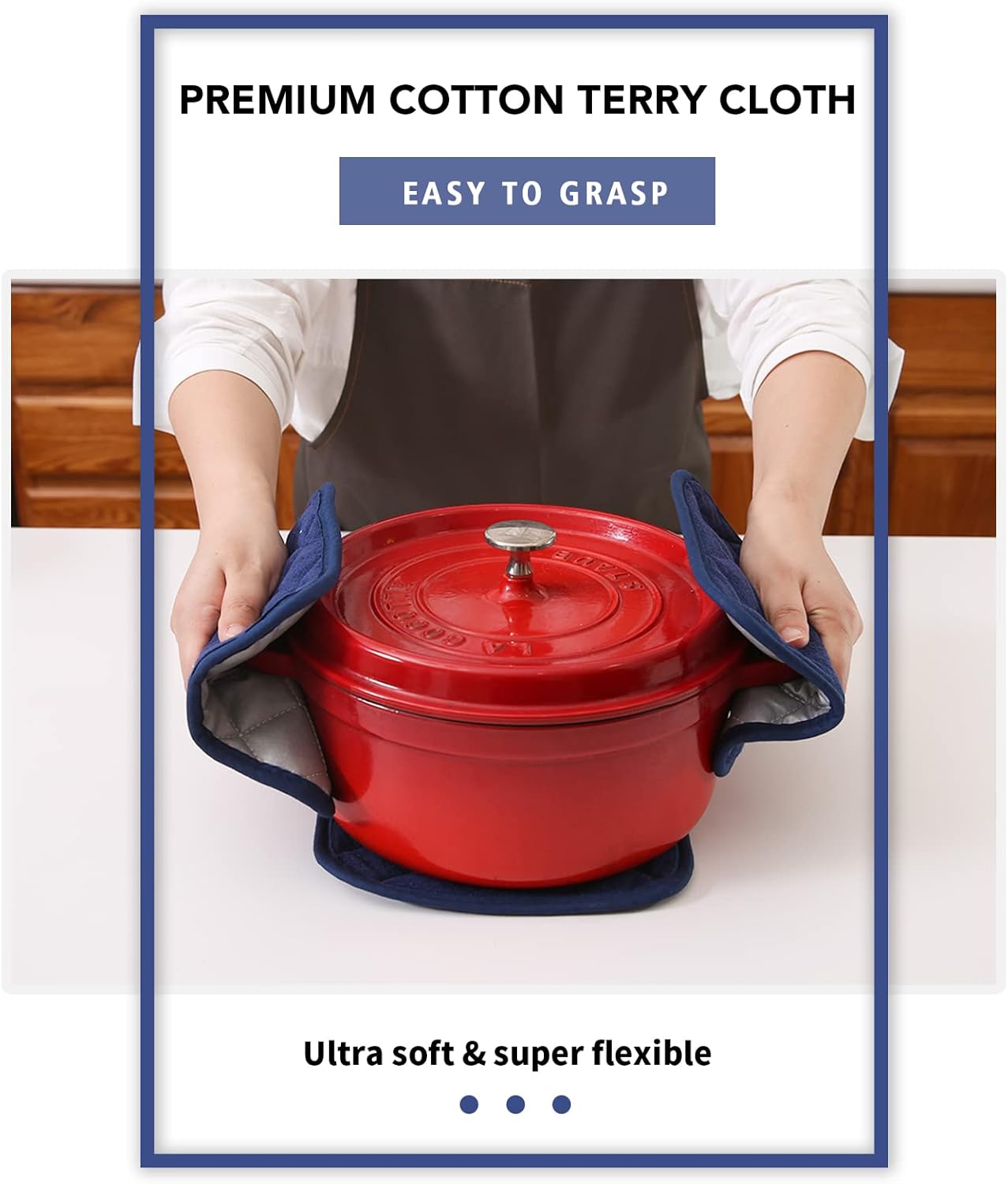 Joyhalo 6 Pack Pot Holders for Kitchen,Cotton Oven Holder with Great Heat Resistance,Non Slip Hot Pads for Kitchen Clearance,Dark Blue
