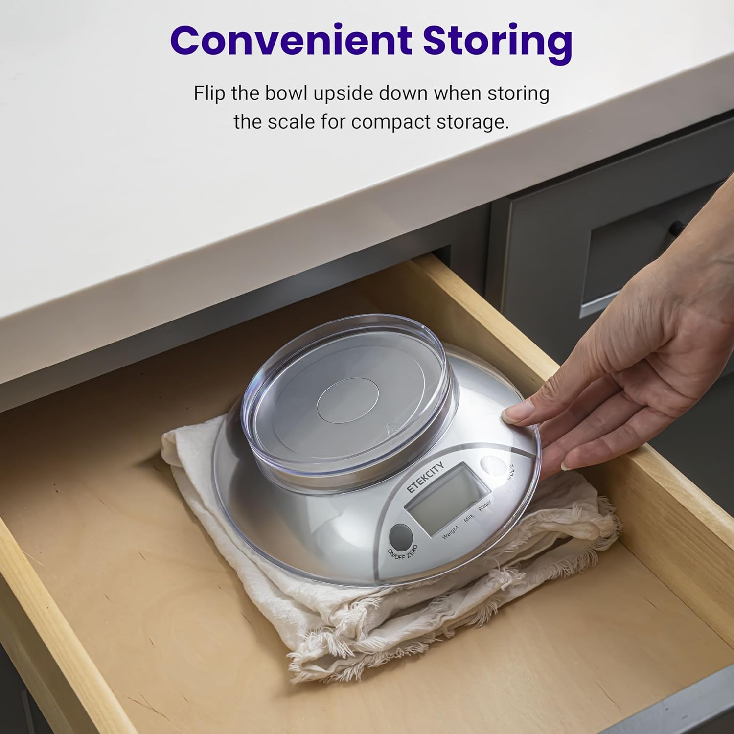 Etekcity Food Kitchen Scale With Bowl, Digital Ounces and Grams for Cooking, Baking, Meal Prep, Dieting, and Weight Loss, 11lb/5kg, Backlit Display