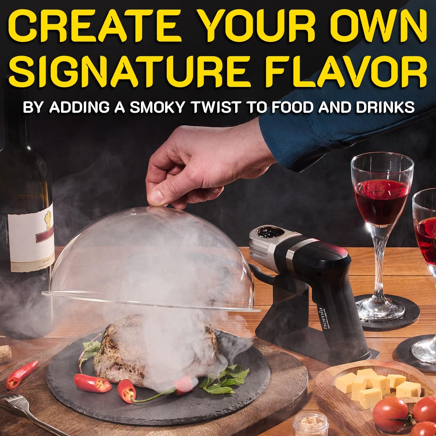 - 🔥 MULTIPURPOSE & GREAT GIFT - Cocktail, Whiskey, Meat, Fish, Cheese - add a smoky flavor to virtually any food or Cocktail. This Cocktail Smoker brings your weekend to new heights and makes you feel like a professional mixologist and chef. It also makes a useful gift for men for any close person in your life. Excellent gift choice for Father`s day and other occasions: Birthday, Father`s Day, Anniversary, Valentine's Day, Thanksgiving, Christmas, etc.