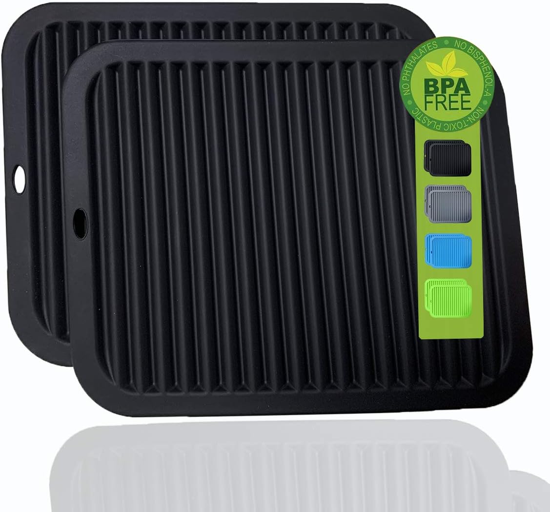 2 Pack Large Silicone Trivet Mats/Hot Pads, Heat Resistant Pot Holder,9"x12" Non Slip Flexible Durable Pot Coaster Kitchen Table Mats (Wavy Black)