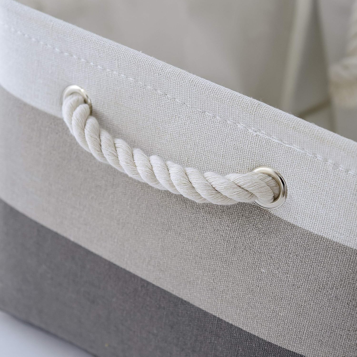 - Fabric Material: Storage basket is constructed of linen + EVA Inner, lined with soft fabric, it’s easy to clean. Metal eyelets and sturdy handle make it easy to carry or pull off and out of shelves