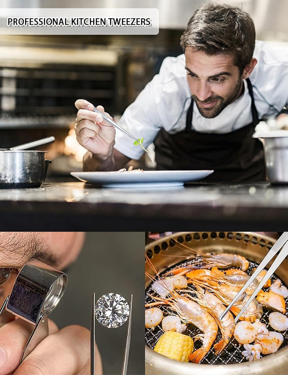 - Package Content - These precision food tweezers are comes with 3 size, 6.5inch(16.5cm), 8.5inch(21.6cm),12inch(30cm). Different sizes can meet daily use