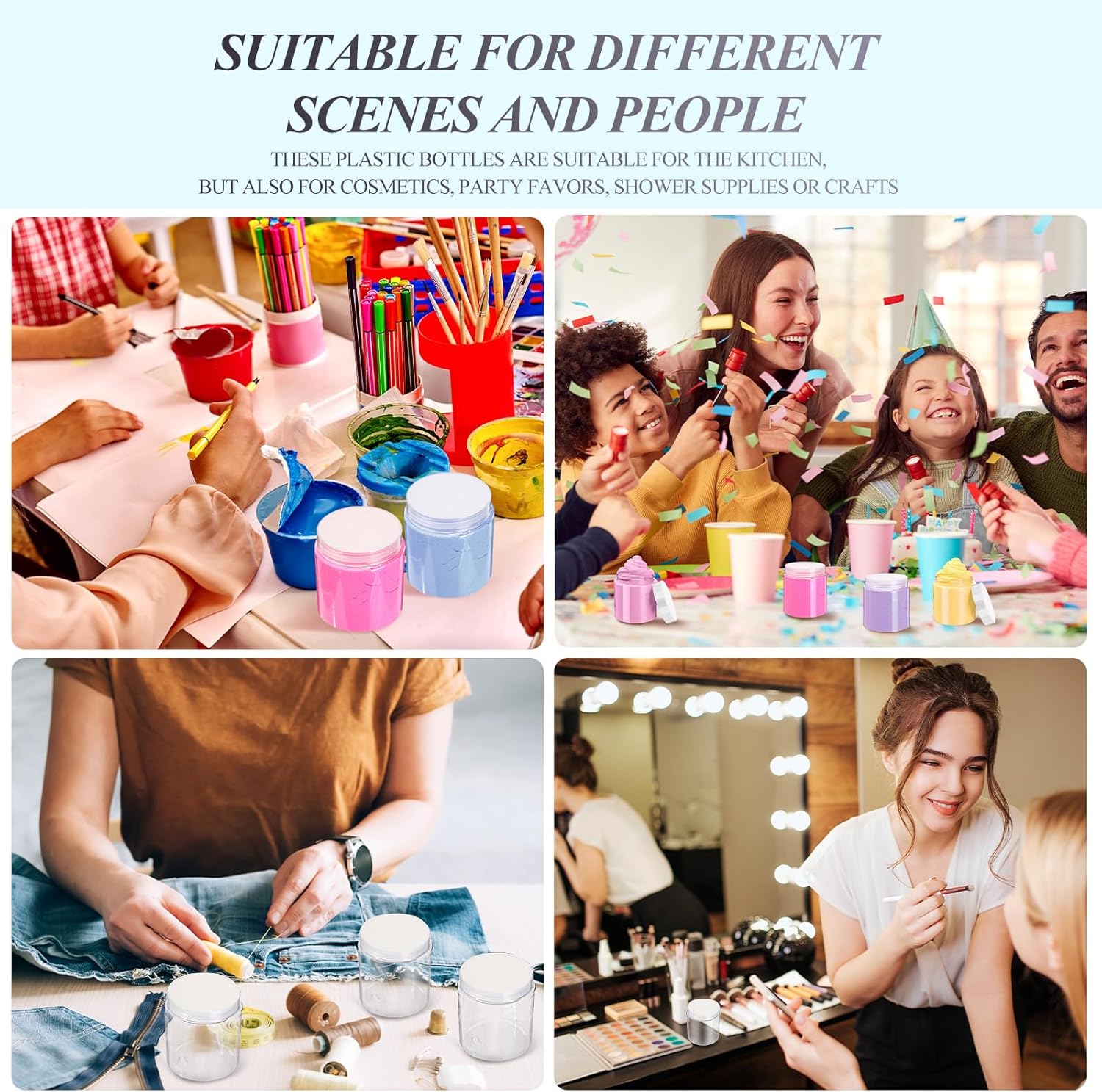 - Widely applicable: useful way to store and save your homemade cosmetic, body lotion, moisturizers, face masks, specimen collection, putty, lotions, fragrances, DIY, party favors, or other crafts, good tools in daily life