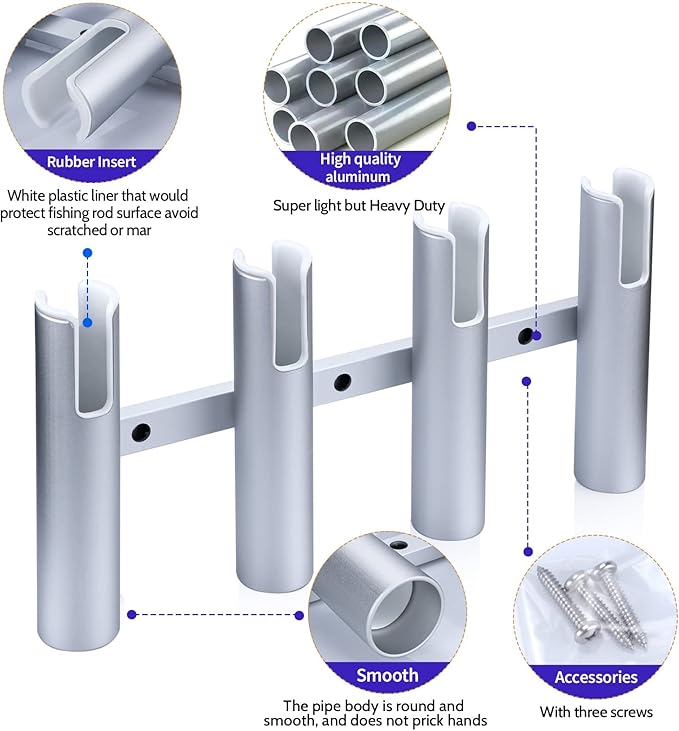 Marinebaby Fishing Rod Holder Aluminum, 3/4 Link Tube, Aluminum 4 Rod Rack, Suit Boats & Yacht