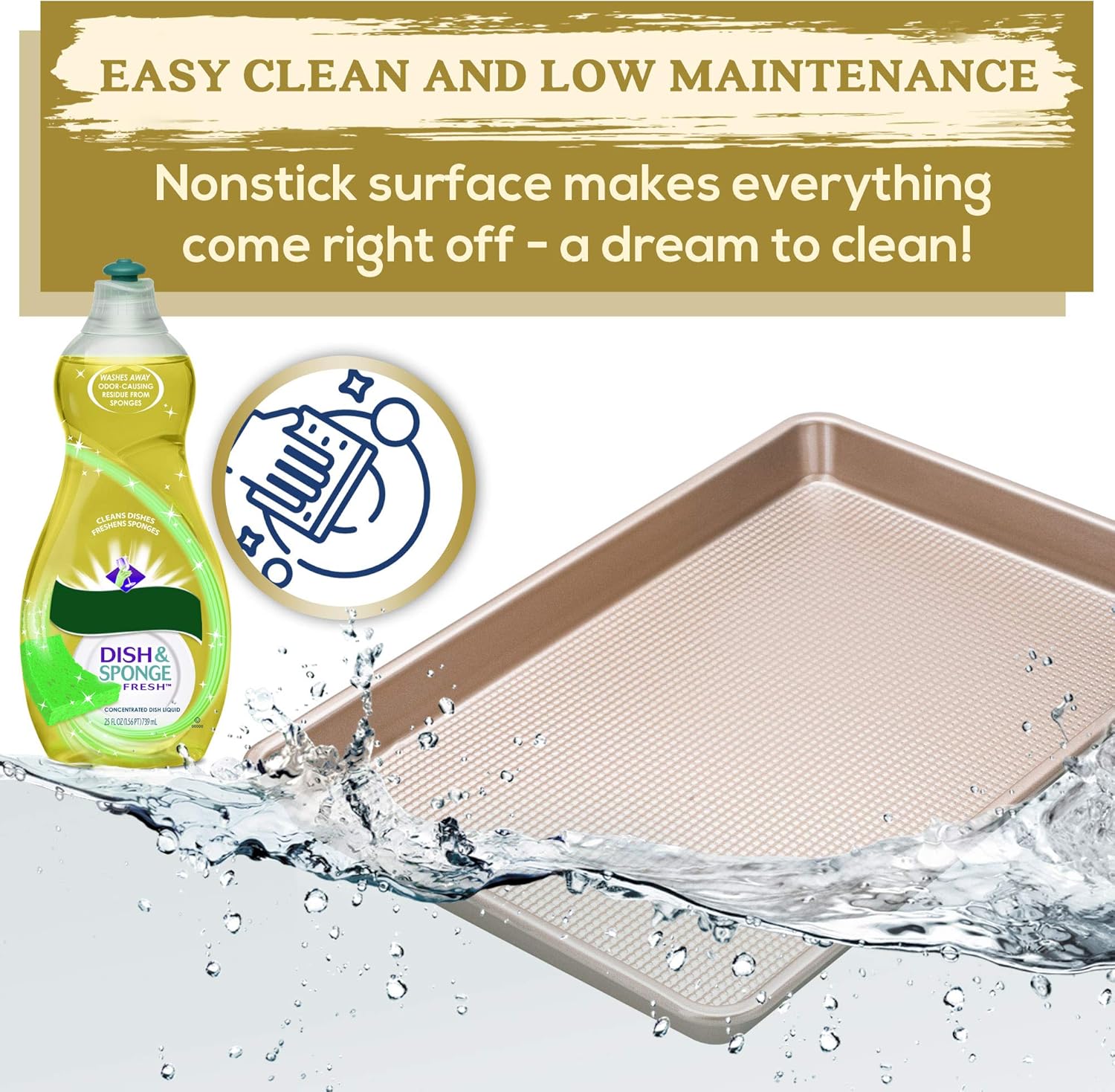 - EASY RELEASE: Easy cookie release, no spraying required; it's impossible to achieve perfect cookies when they stick to your cookie sheet; your cookies will slide right off this baking sheet pan; this nonstick small baking sheet is coated with a food-safe, PFOA-free, and PTFE-free coating enabling quick and easy cookie release
