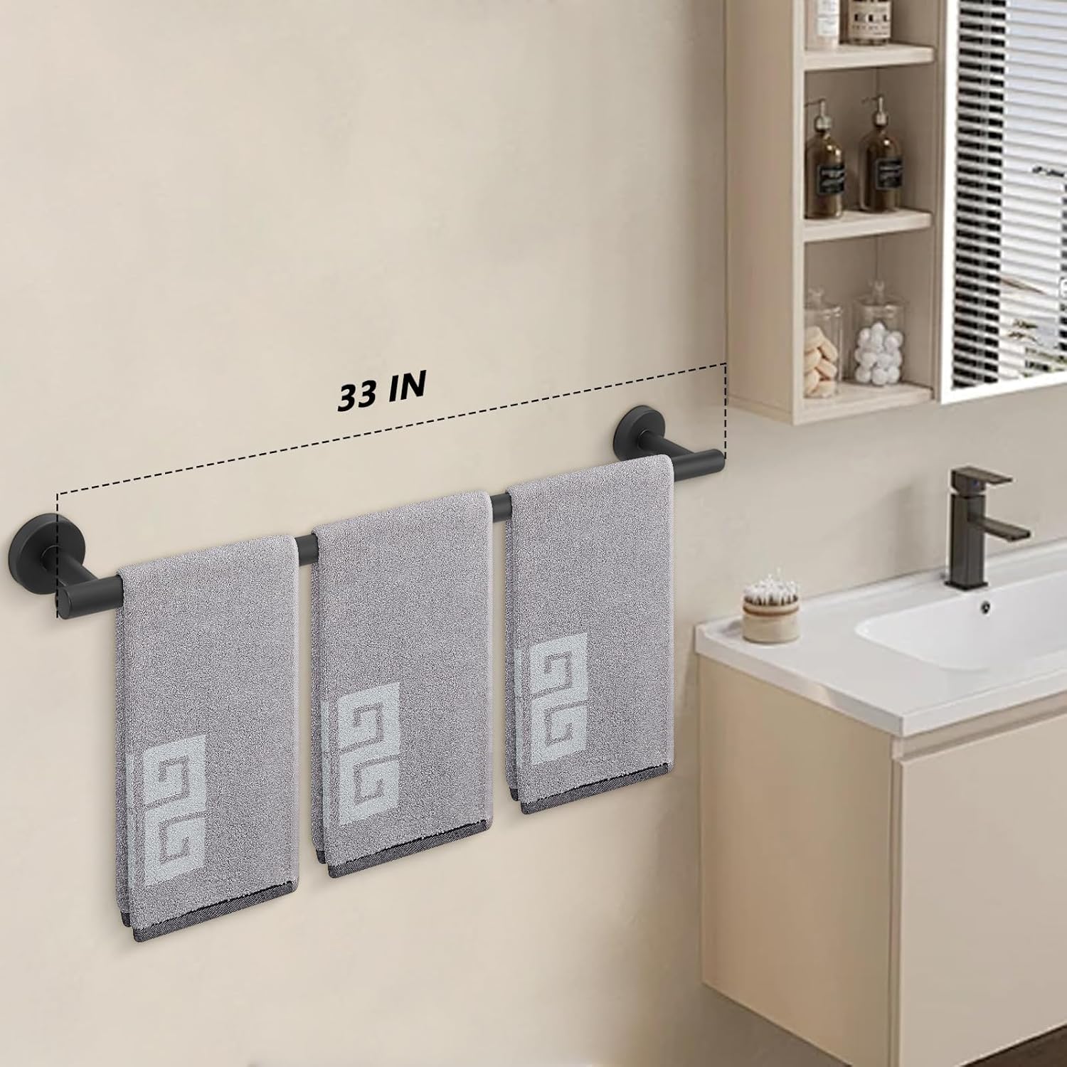 NearMoon Bath Towel Bar, Bath Accessories Thicken Stainless Steel Shower Towel Rack for Bathroom, Towel Holder Wall Mounted (1 Pack, Matte Black, 33 Inch)