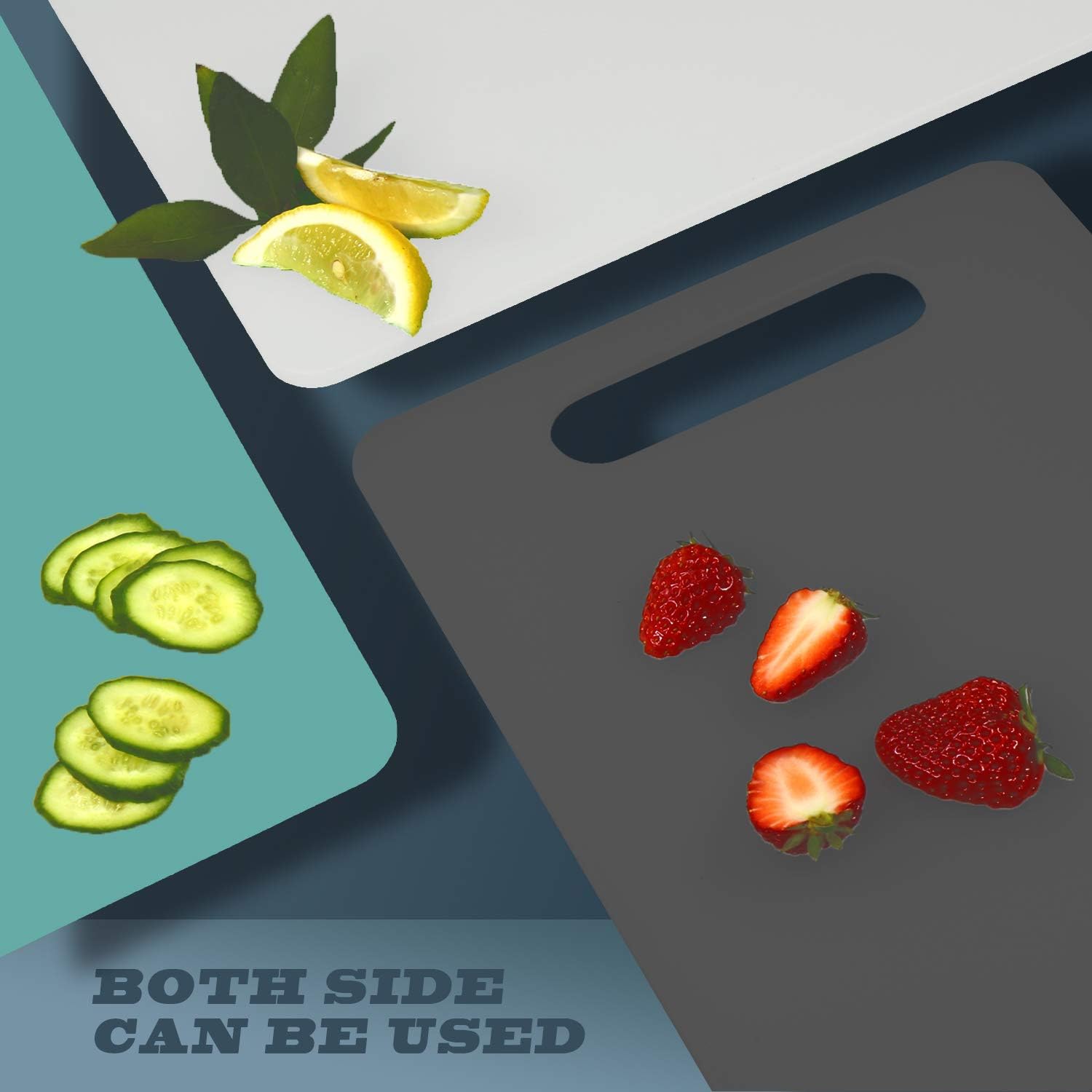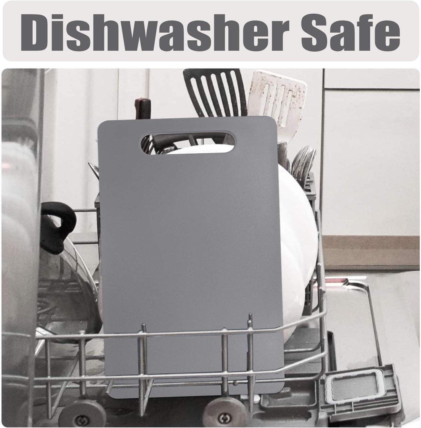 Fotouzy Plastic Utility Cutting Board with Handles, Food Safe PP Material, BPA Free, Dishwasher Safe, Thick Chopping Board, Large Size, Easy Grip Handle, for Kitchen (Gray), 15.5" X 10"